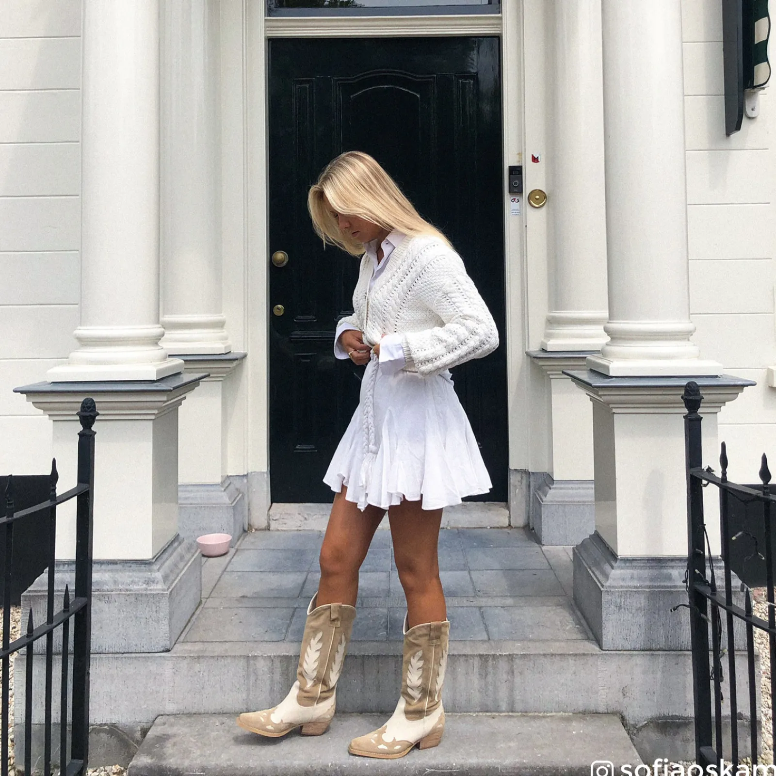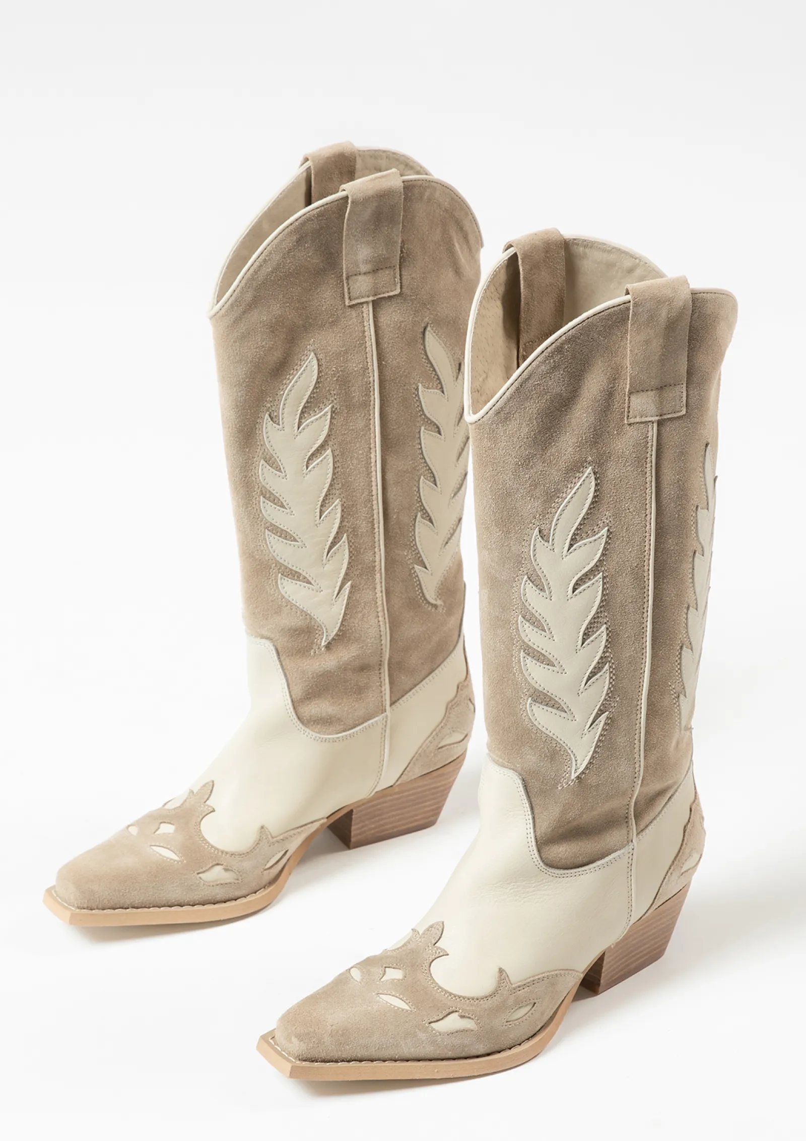 Beige Leren Cowboylaarzen Met Off White Details^Sacha Hot