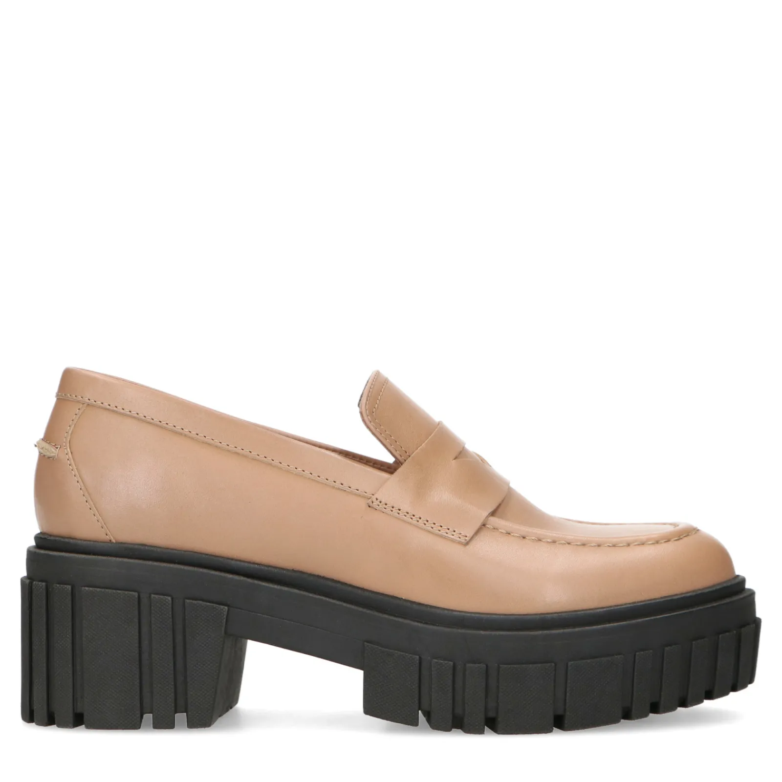 Deze Beige Leren Loafers Van Sacha Geven Een Stoere Touch Aan Iedere Outfit! De Chunky Zool Met Gestreepte Afwerking Geeft De Loafers Een Edgy Touch. De Zool Is 3 Cm Hoog In Combinatie Met Een Hakhoogte Van 6 Cm. De Loafers Zijn Aan De Binnen- En Buitenkant Gemaakt Van Leer, Dus Maak Gebruik Van De Juiste Onderhoudsproducten Om Er Zo Lang Mogelijk Van Te Blijven Genieten.