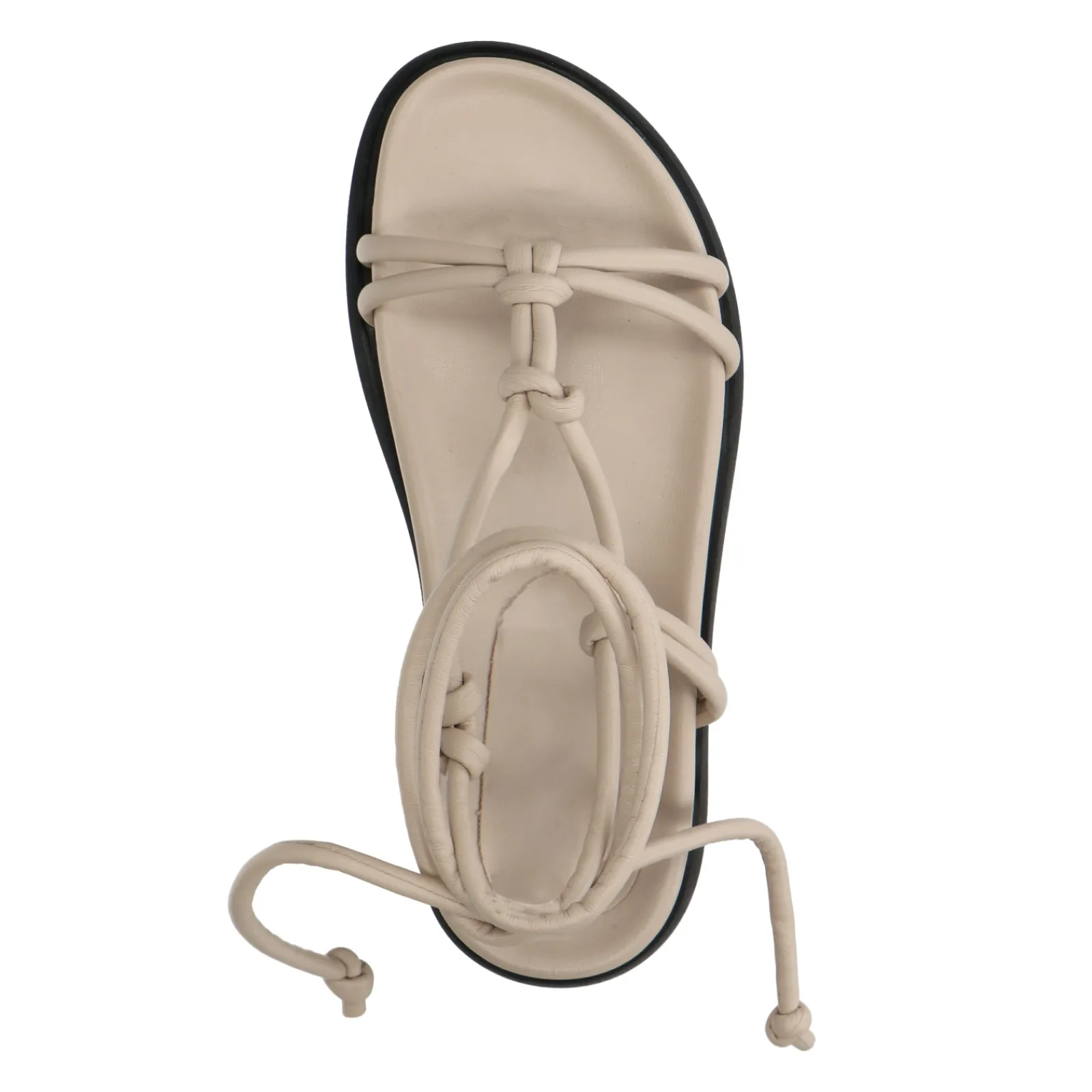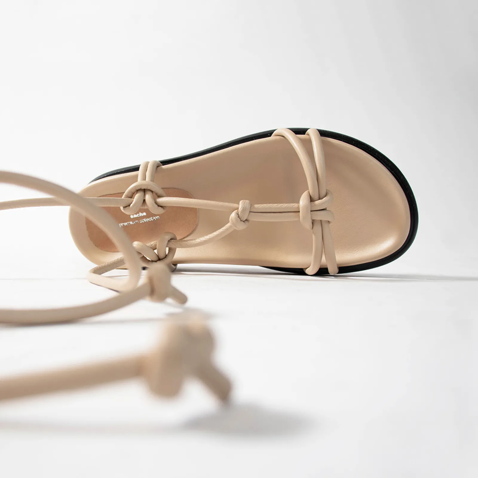 Beige Platte Sandalen Met Strikveters^Sacha Discount