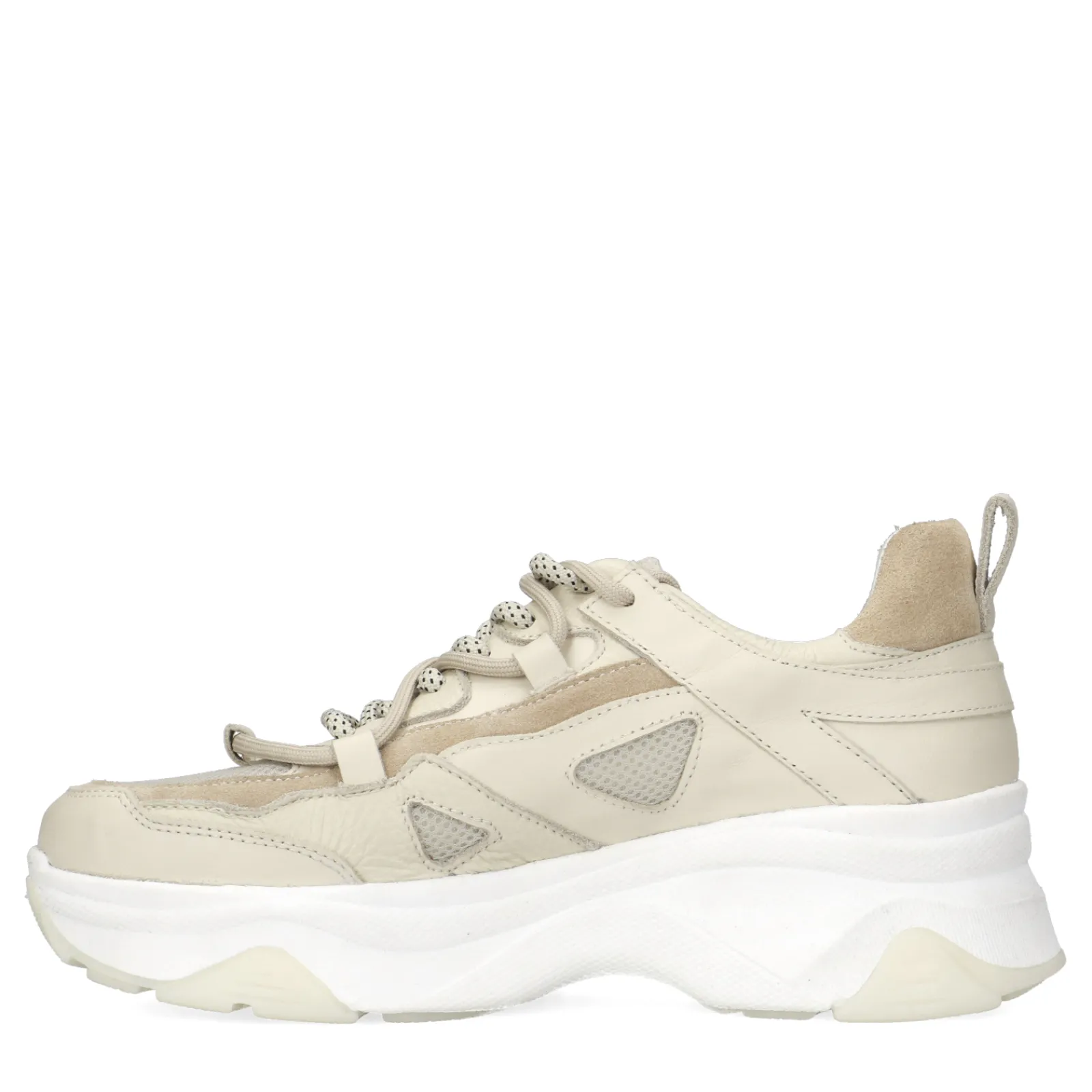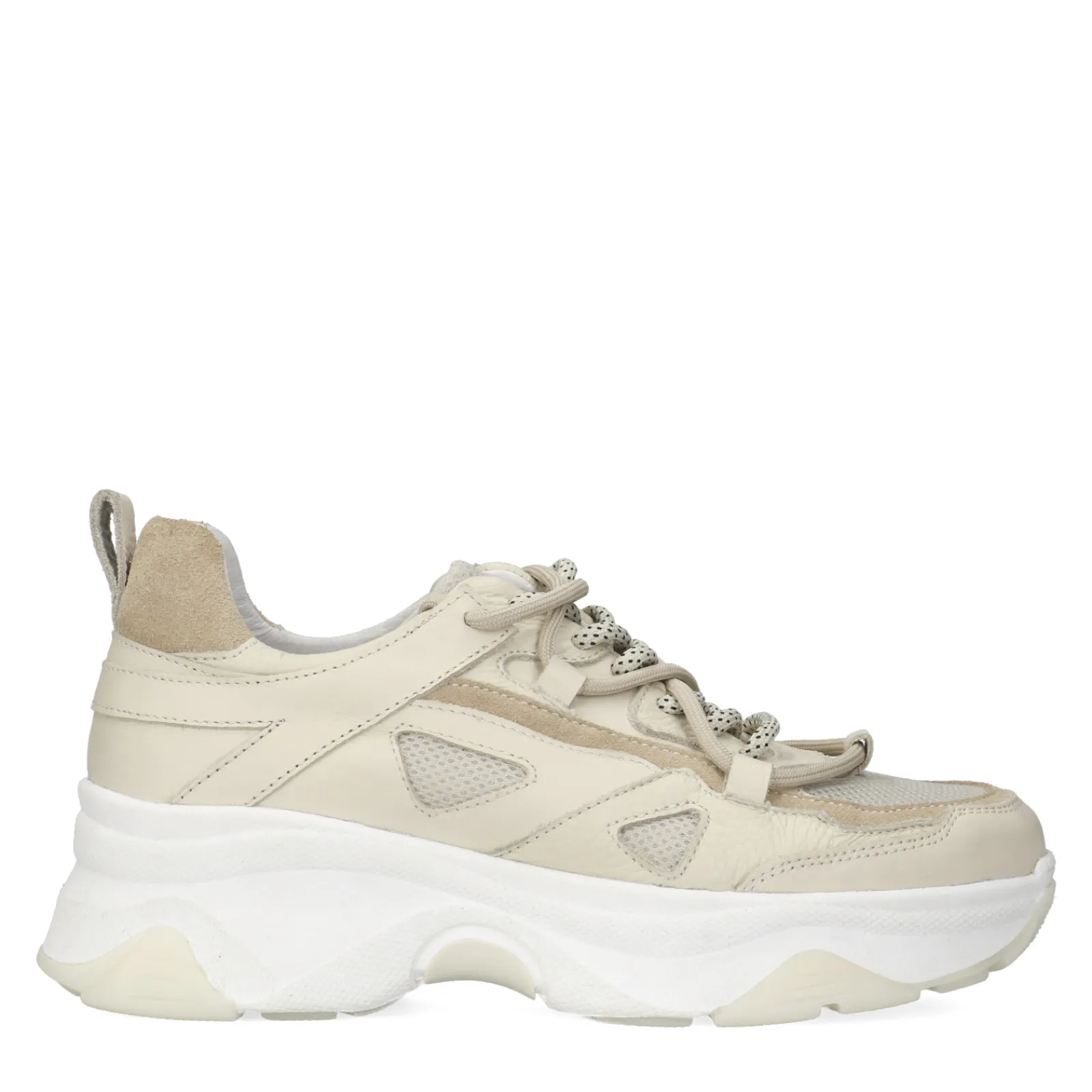 Deze Beige Sneakers Van Sacha Zijn De Perfecte Nude Sneakers Om Toe Te Voegen Aan Je Collectie. De Dubbele Veters Geven Deze Sneakers Een Extra Touch. De Sneakers Zijn Aan De Binnen- En Buitenkant Gemaakt Van Leer. De Sneakers Hebben Een Dikke Zool Van 3 Cm Hoog En Een Hakhoogte Van 5 Cm. Maak Gebruik Van De Juiste Onderhoudsproducten.