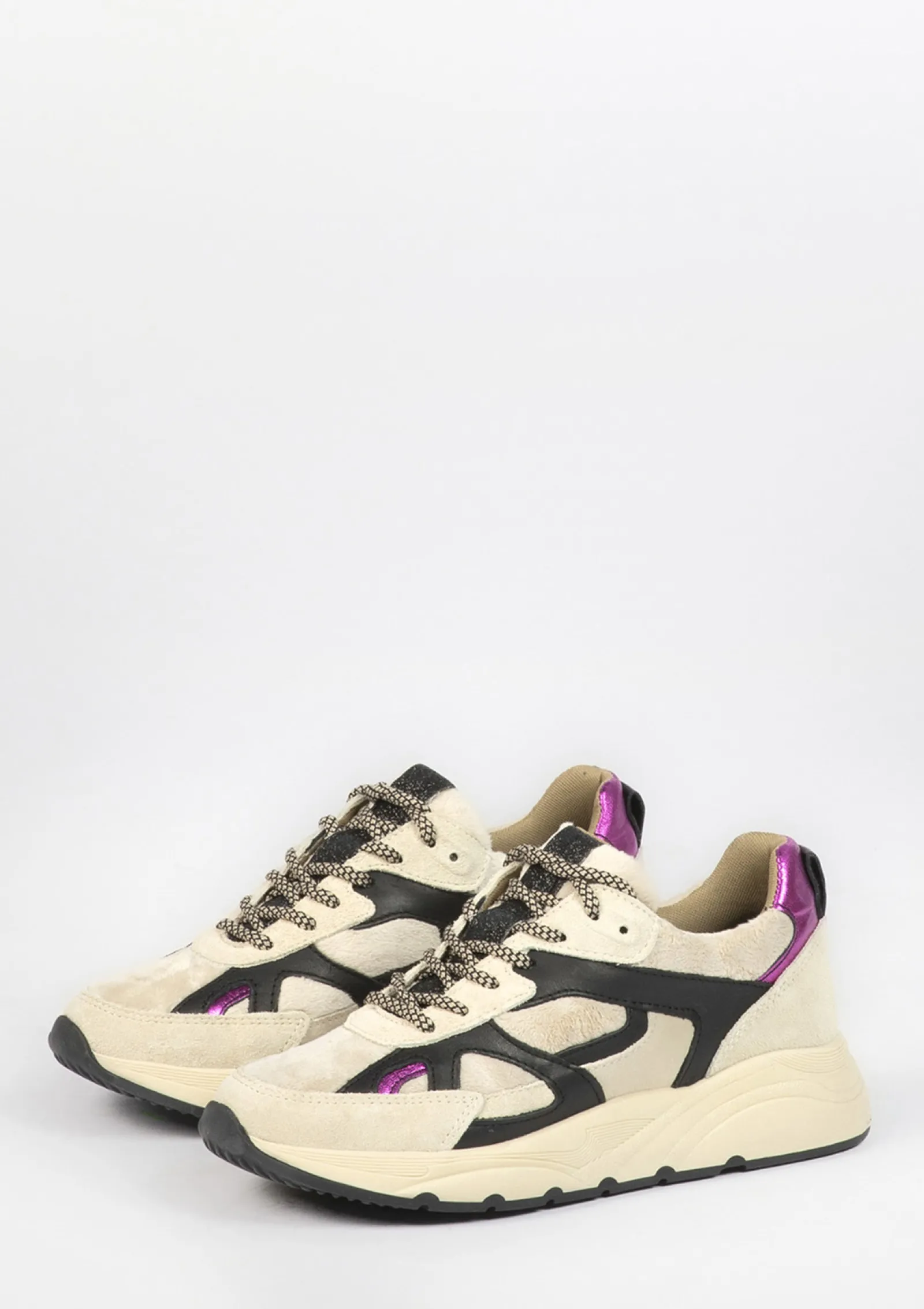Beige Sneakers Met Zwarte En Fluffy Details^Sacha Best