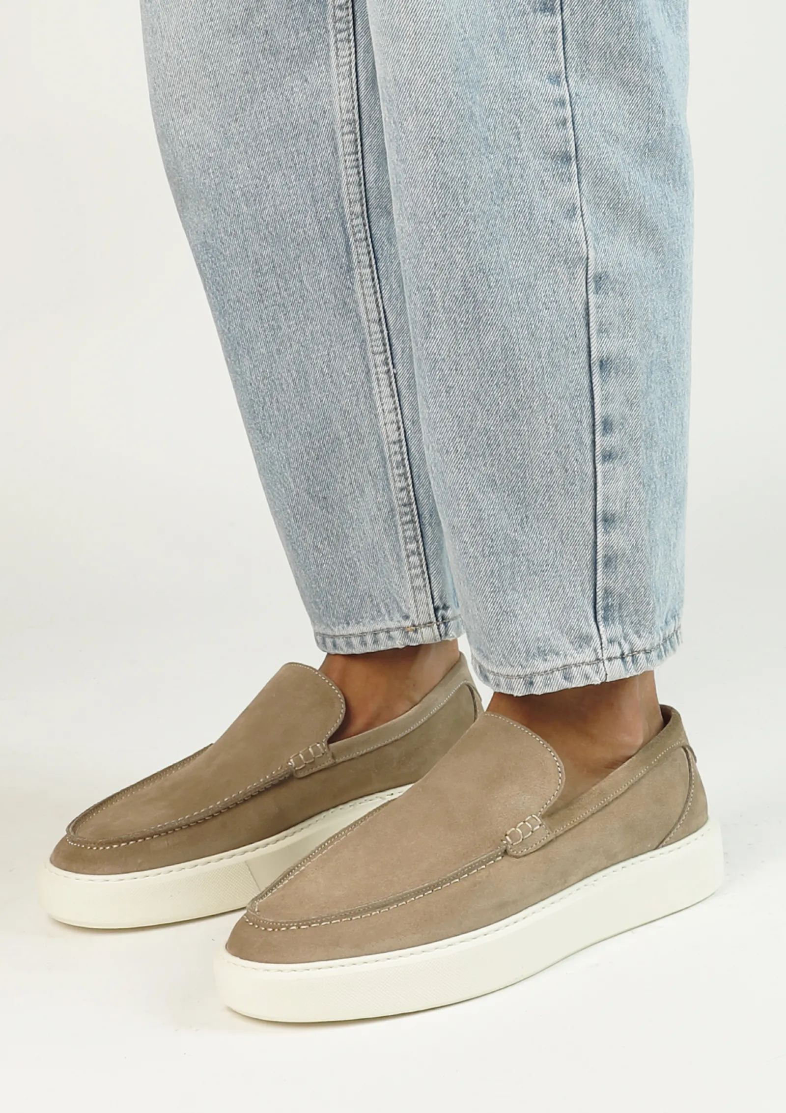 Beige Suede Loafers Met Witte Zool^Sacha Cheap