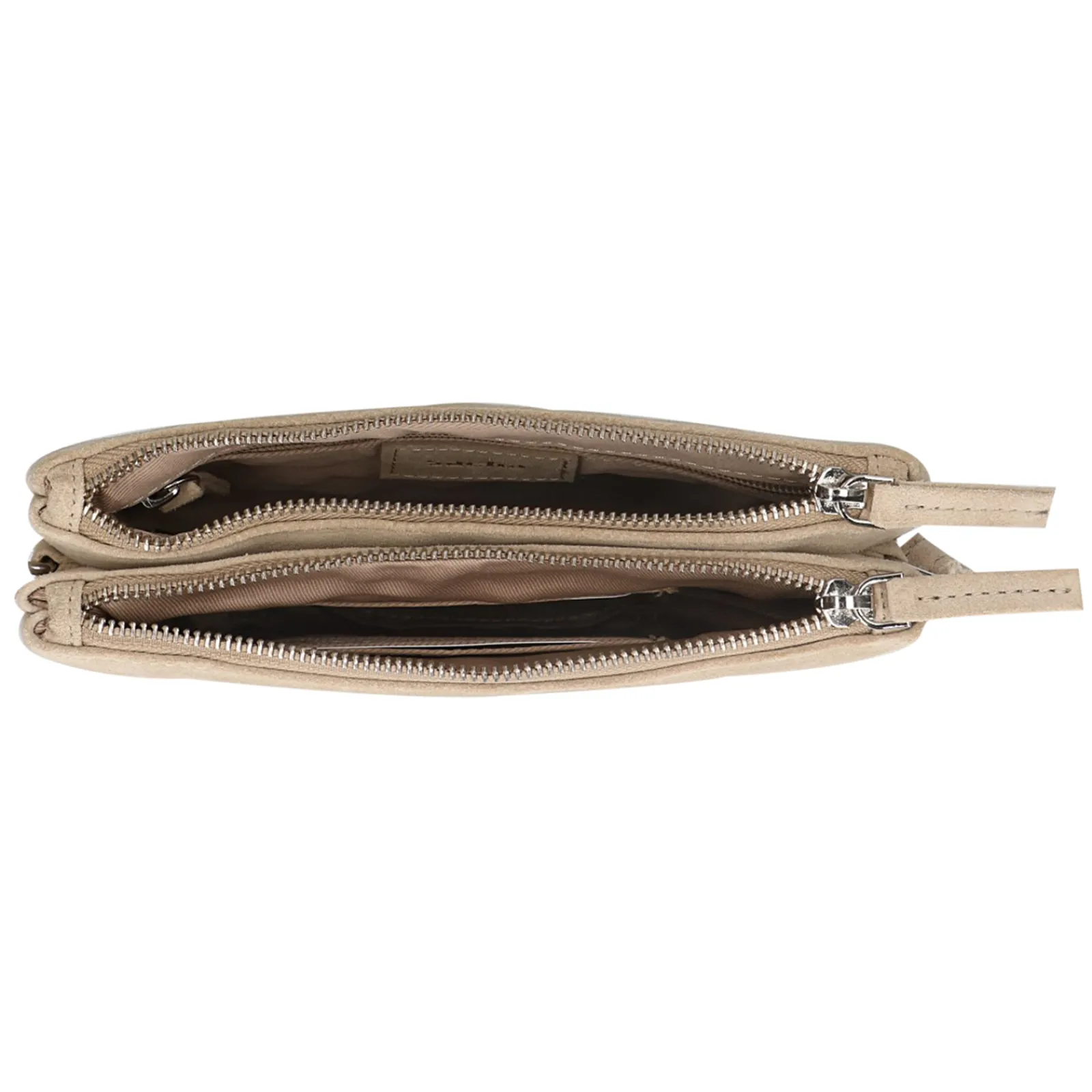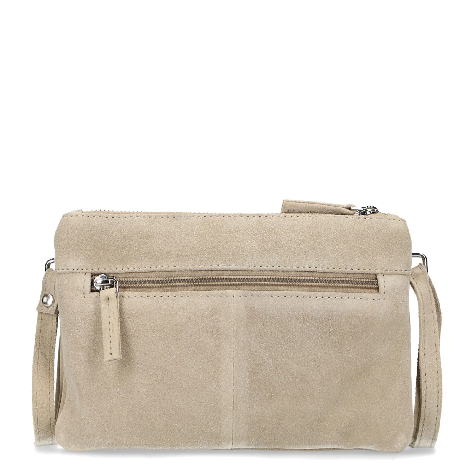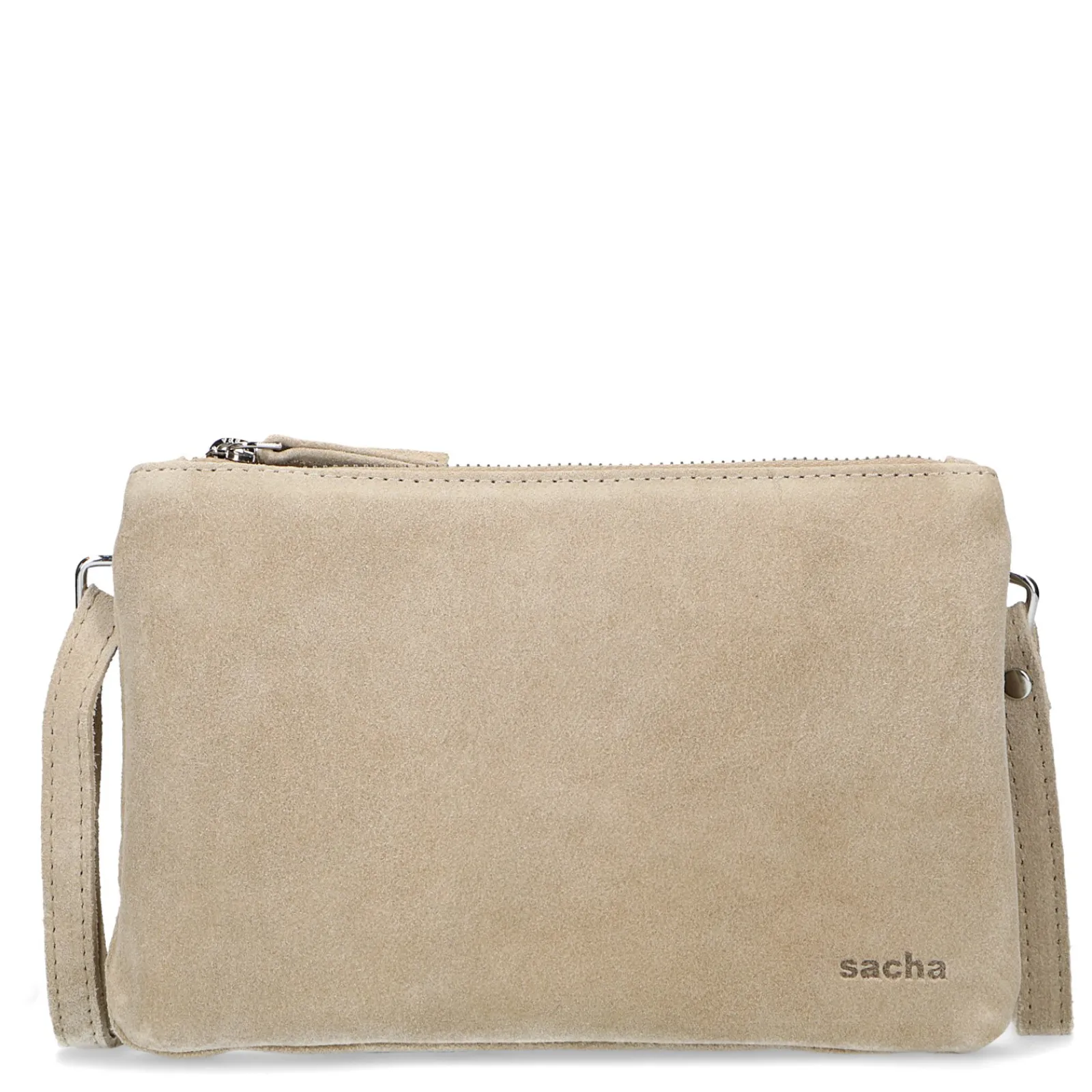 Dit Beige Schoudertasje Is Afkomstig Uit De Bags Premium Collectie Van Sacha. De Tas Heeft Twee Vakken Die Allebei Gesloten Worden Door Een Zilverkleurige Rits. In Beide Vakken Vind Je Verschillende Kleine Vakjes Waardoor Je Al Jouw Spullen Goed En Veilig Kunt Opbergen. De Tas Heeft Een Verstelbare Band Met Een Totale Lengte Van 118 Cm. De Buitenzijde Is Gemaakt Van Suede En De Binnenzijde Van Textiel. De Afmetingen Zijn 15X22X2 (Lxbxd) Cm.
