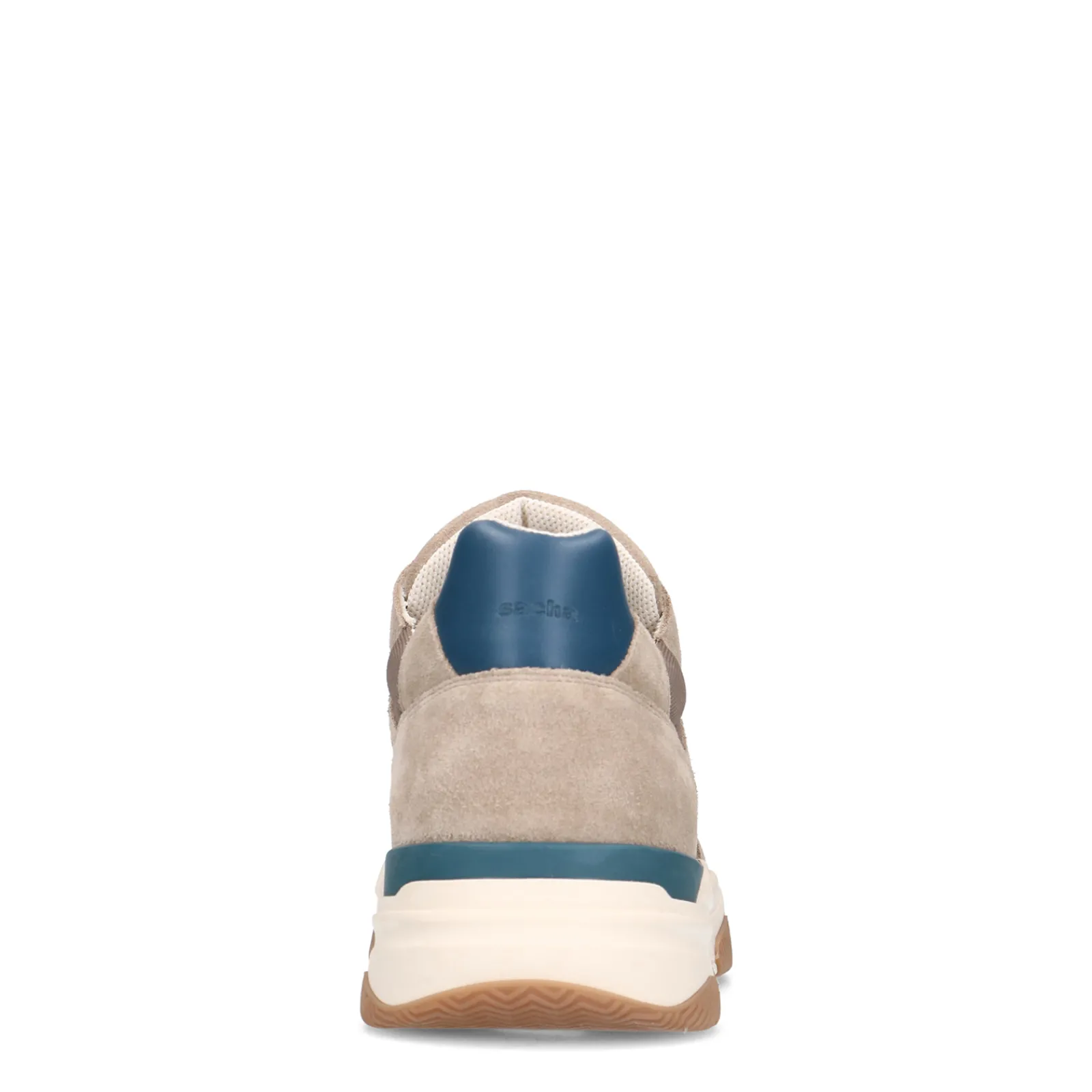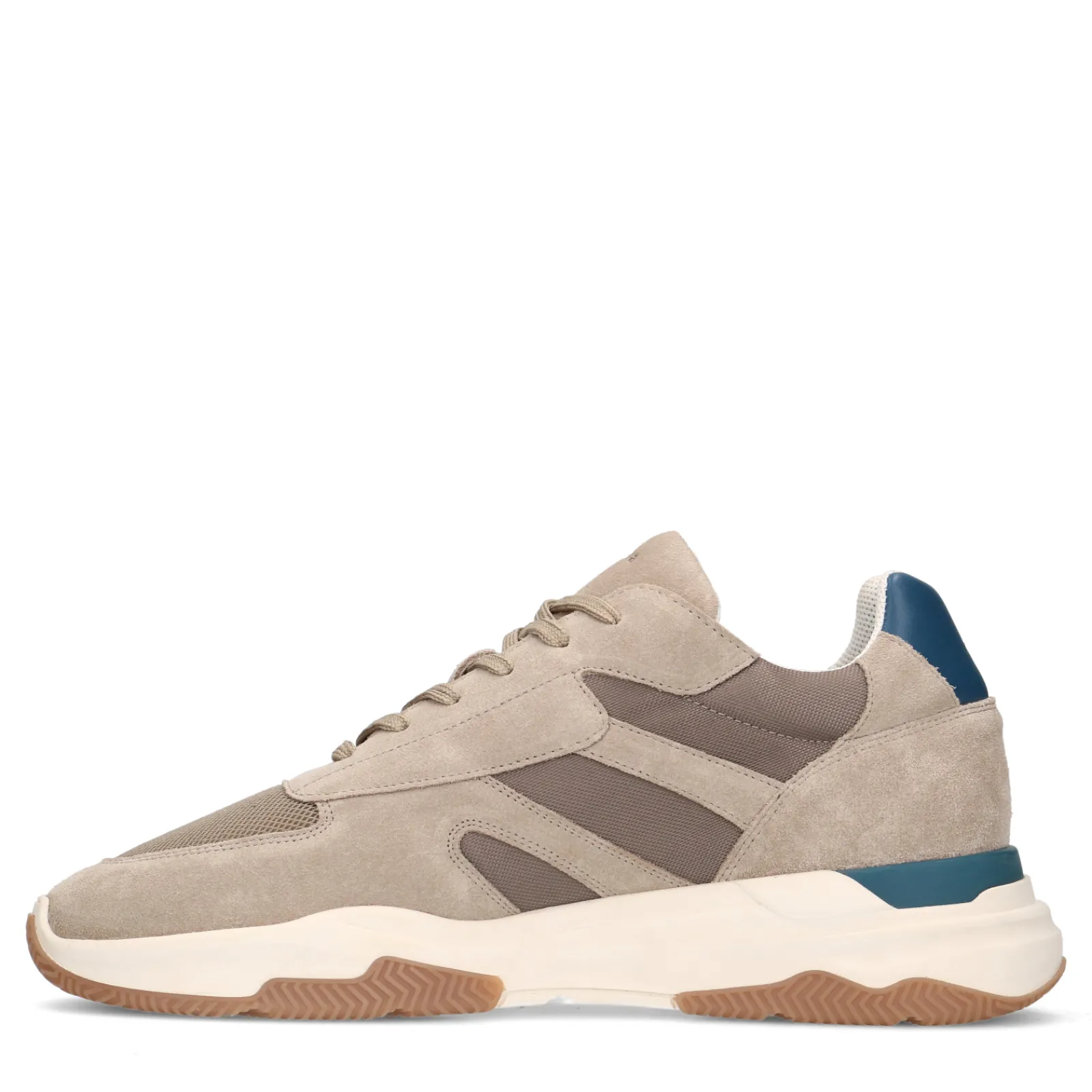Beige Suede Sneakers Van Sacha. De Sneakers Zijn Aan De Buitenzijde Gemaakt Van Leer En Suede, En Hebben Aan De Achterzijde Een Blauw Detail. De Sneakers Hebben Een Doorlopende Zool Van 3 Cm Dik Met Een Lichtverhogende Hak Van 5 Cm. De Sneakers Hebben Twee Veteropties, Zowel Witte Als Grijze Veters! Good To Know: De Binnenzool Is Uitneembaar. Maak Gebruik Van De Juiste Onderhoudsproducten Zoals De Collonil Carbon Pro 400 Ml.