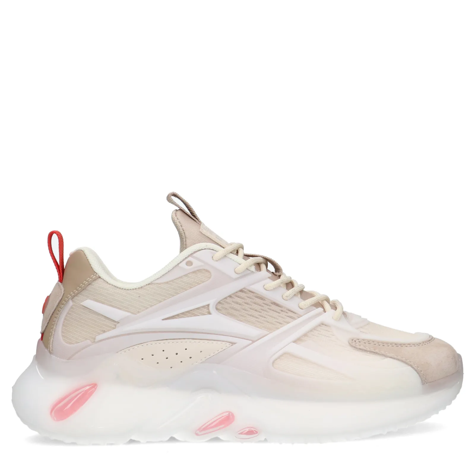 Deze Beige Sneakers Van Sacha Hebben Een Technisch Design Van Textiel Met Suede Overlay’s. Verschillende Lichte Tinten Zoals Wit En Beige Zijn Verwerkt In De Look Van Deze Heren Sneakers. De Golvende Witte Zool Heeft Een Dikte Van 4 Cm. Maak Gebruik Van De Juiste Onderhoudsproducten!