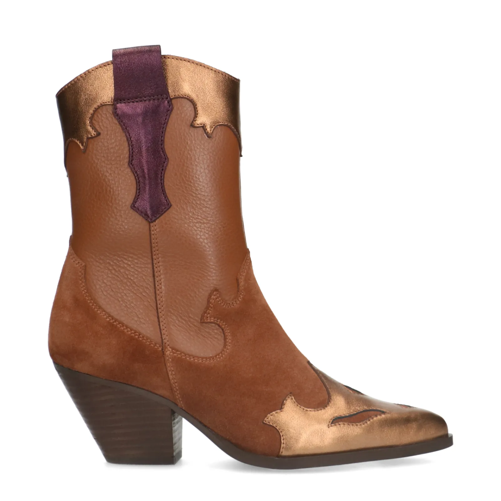 Bruine Leren Cowboylaarzen Met Brons Metallic Details^Sacha Discount