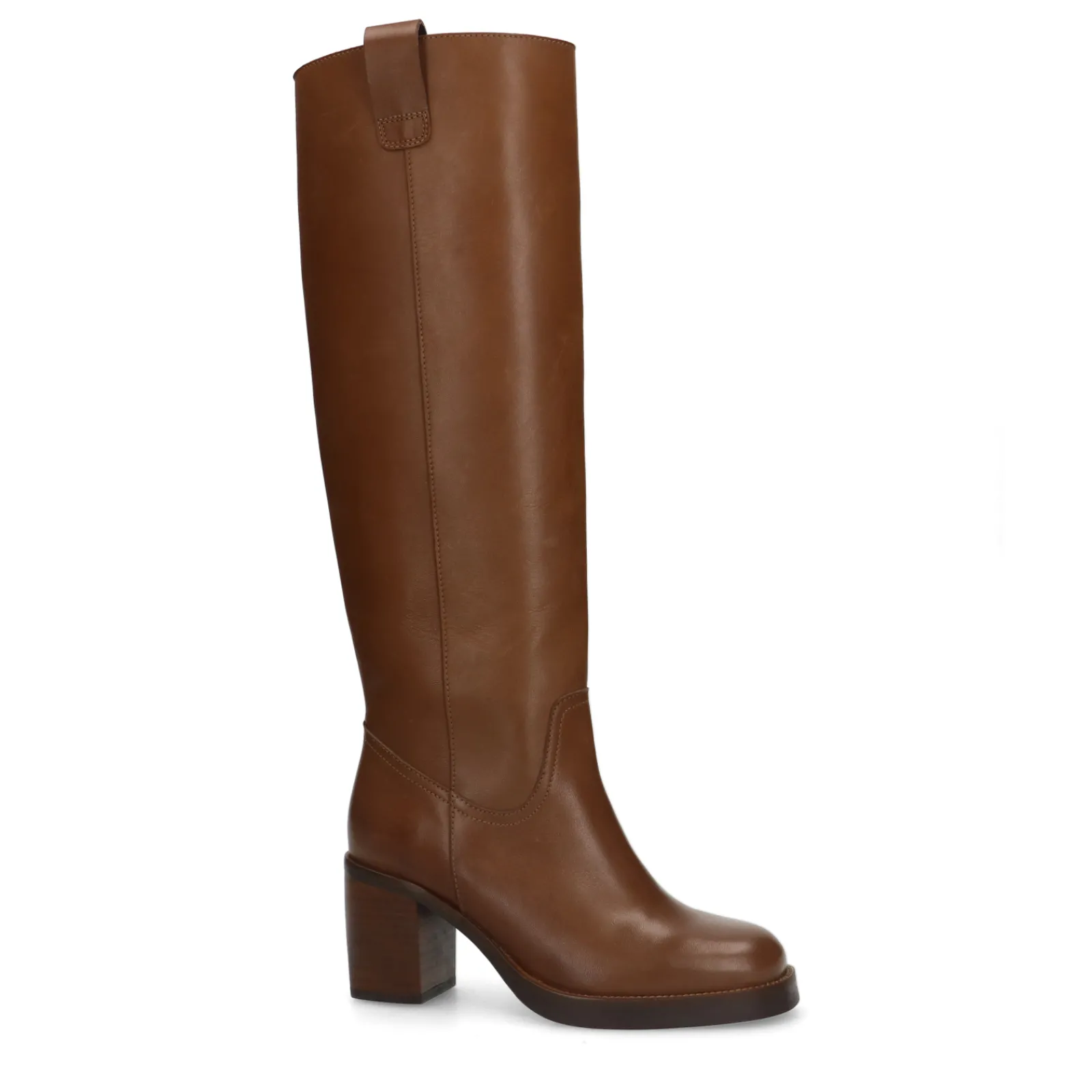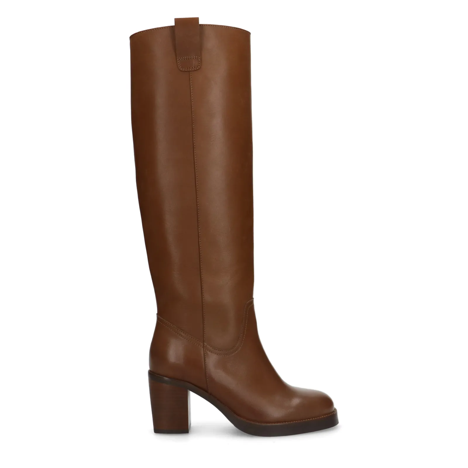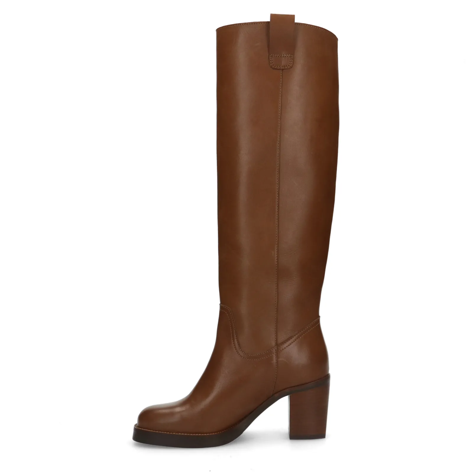 Bruine Hoge Boots Met Hak Van Sacha. De Laarzen Met Klassiek Design Hebben Grovere Details Zoals Een Lage Platform Zool Van 1 Cm, Een Hoekige Blokhak En Een Gehoekte Ronde Neus. Zowel De Binnen- Als Buitenzijde Zijn Gemaakt Van Leer. De Instap Laarzen Hebben Een Schachthoogte Van 41 Cm, Een Schachtomtrek Van 39 Cm En Geen Rits. Maak Gebruik Van De Juiste Onderhoudsproducten.