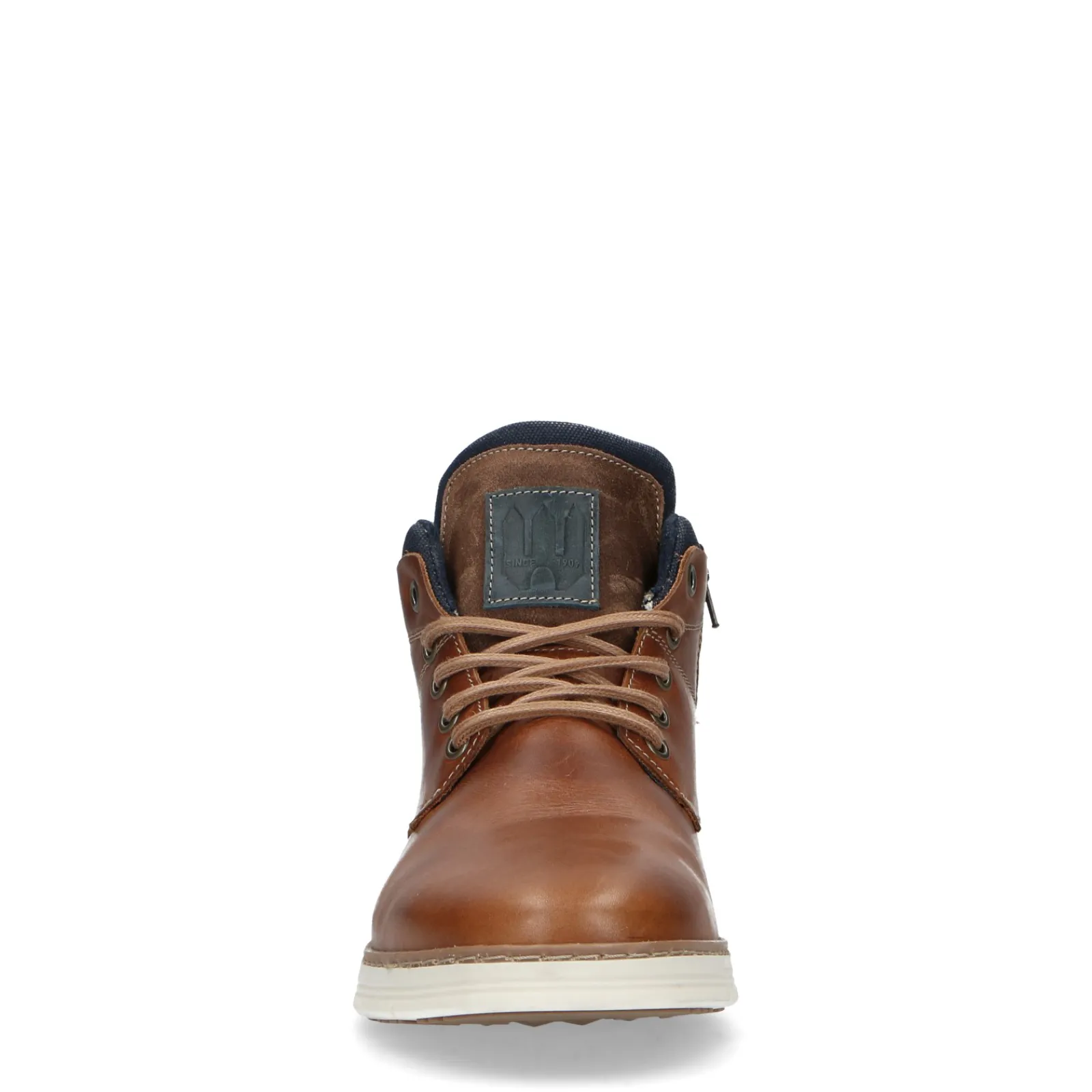 Bruine Leren Veterboots Uit De Men Casual Collectie Van Sacha. De Buitenkant Is Gemaakt Van Leer En De Binnenkant Van Synthetisch Materiaal. Je Kunt De Boots Gemakkelijk Aan Doen Middels De Rits En Strakker Trekken Met De Veters. De Boots Hebben Verschillende Donkerblauwe Accenten Waardoor Ze Een Casual Uitstraling Krijgen. Ook Zit Er Op De Hiel Een Bruin Detail. Good To Know: Het Voetbed Is Uitneembaar. Combineer Ze Onder Een Donkere Jeans Met Sweater Of Shirt Voor Een Casual Look. Maak Gebruik Van De Juiste Onderhoudsproducten.