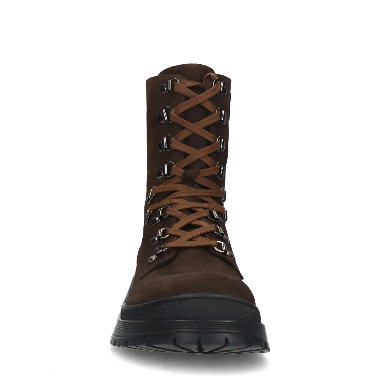 Deze Bruine Veterboots Van Sacha Hebben Een Hoog Model En Een ‘Outdoors’-Feeling. De Boots Zijn Aan De Buitenzijde Gemaakt Van Suede En Aan De Binnenzijde Van Textiel. De Enkelboots Hebben Een Golvende Zwarte Zool Van 3 Cm, Een Schachthoogte Van 20 Cm En Een Schachtomtrek Van 29 Cm. De Heren Veterboots Hebben Zilverkleurige Ringetjes Bij De Veterogen Als Detail, En Een Handige Rits Aan De Binnenzijde. Maak Gebruik Van De Juiste Onderhoudsproducten.