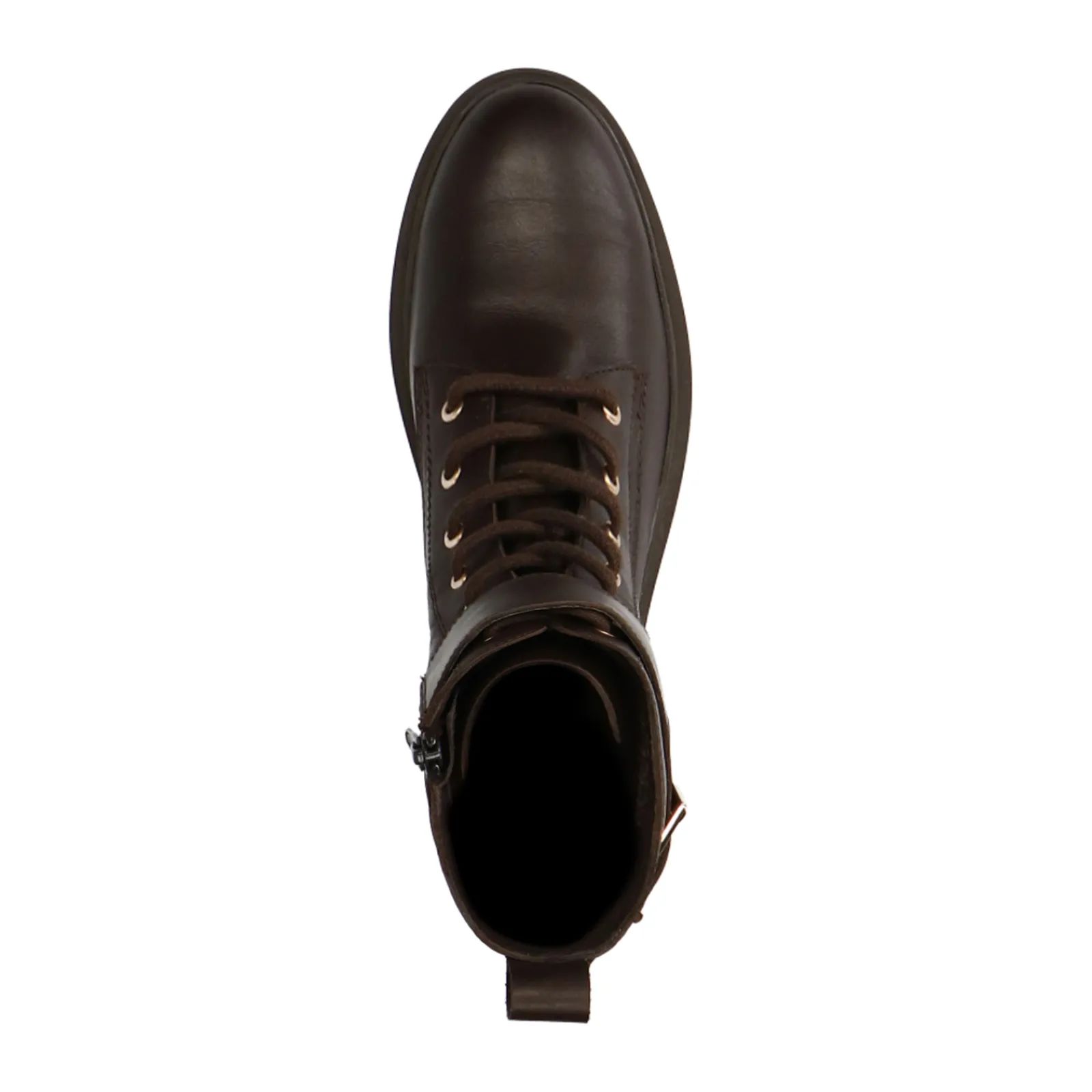 Deep Chocolate Bruine Enkel Veterboots Met Goudkleurige Gespen. De Bruine Veterlaarsjes Van Sacha Zijn Zowel Aan De Binnen- Als Buitenzijde Gemaakt Van Leer. Zowel De Veterogen Als De Twee Buckle Gespen Zijn Goudkleurig. Aan De Binnenzijde Van De Boots Zit Een Handige Rits. Maak Gebruik Van De Juiste Onderhoudsproducten!
