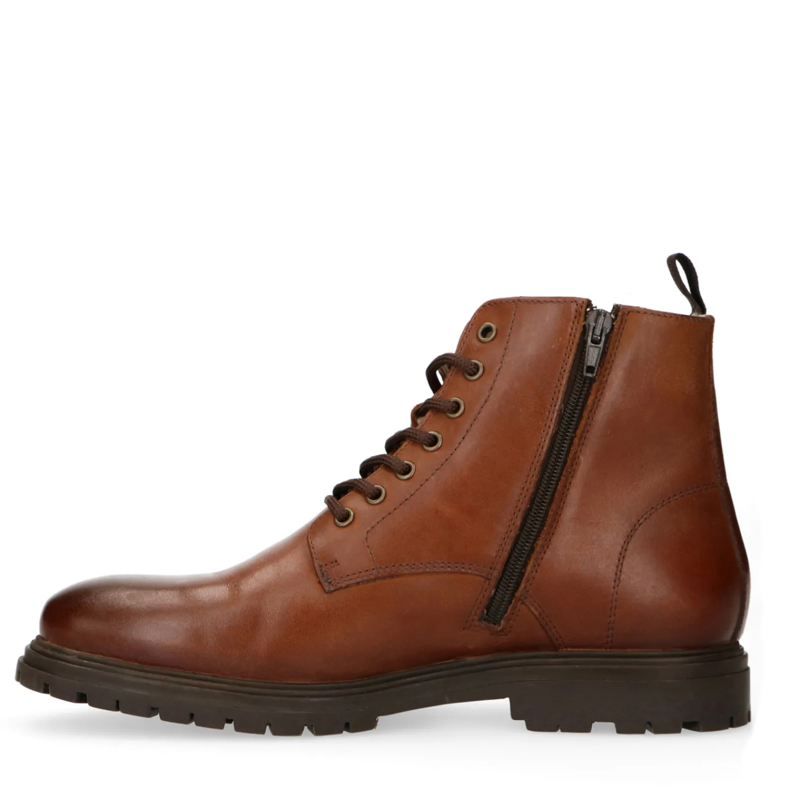 Met Deze Classy Cognac Veterschoenen Kan Je Niet Fout Gaan. De Grove Zool Geeft De Boots Een Stoere Uitstraling. De Buitenkant Van De Schoenen Is Gemaakt Van Leer En De Binnenkant Heeft Een Teddy Voeringl. Door De Rits Aan De Zijkant Trek Je Ze Makkelijk Aan En Uit. Draag Ze Onder Jeans Met Een Blousje Voor Een Casual Uitstraling.
