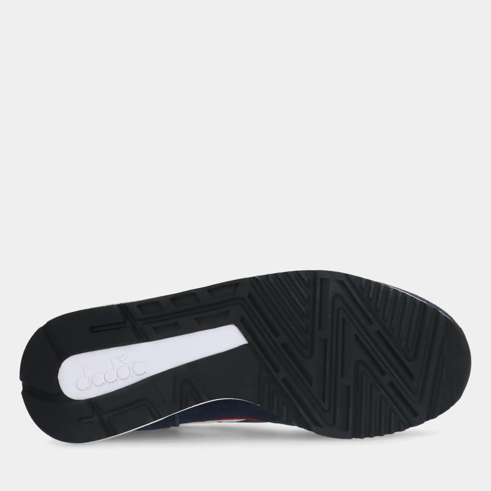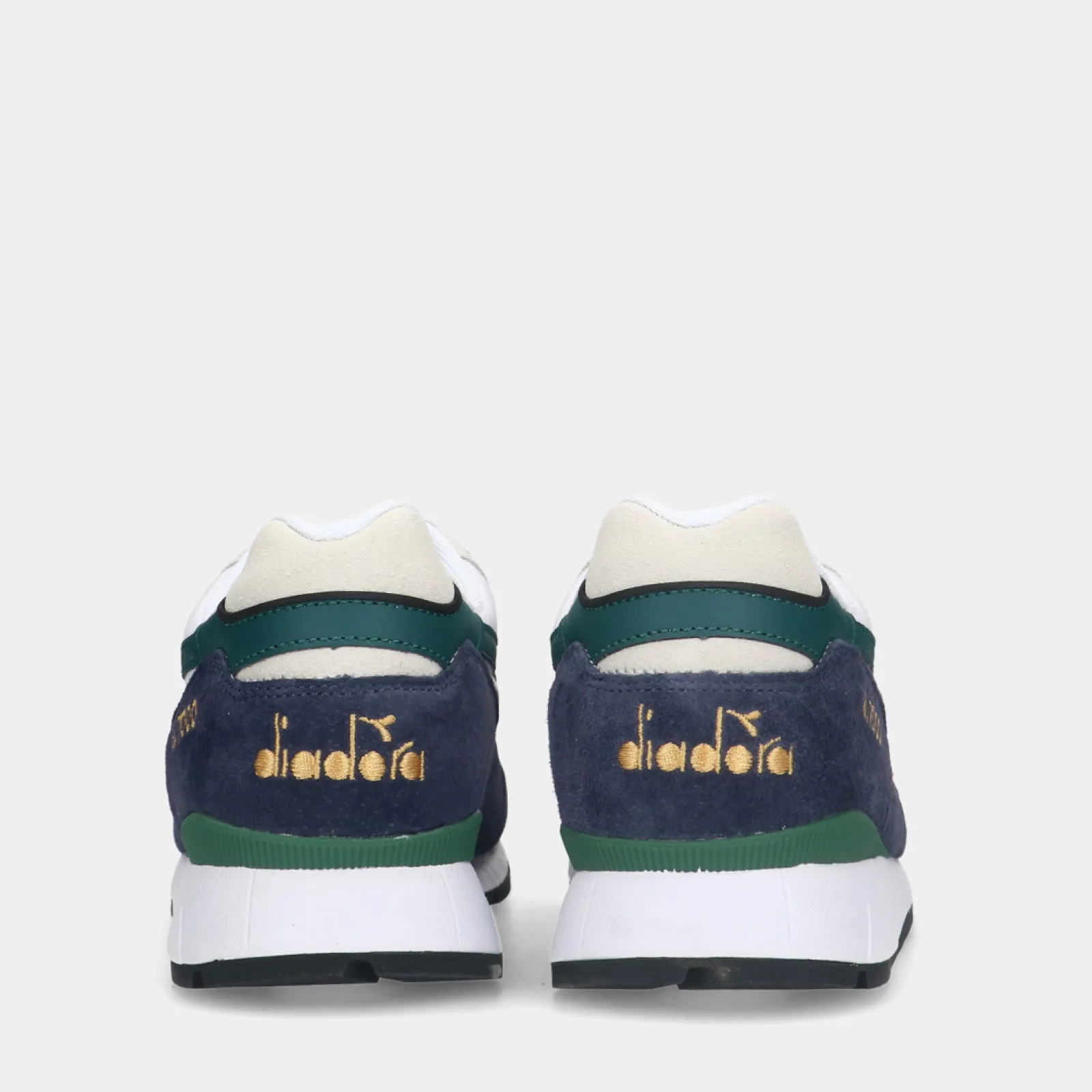 V7000 Navy Low-Top Damessneakers Van Het Merk Diadora. De Retro Running Sneakers Hebben Een Combinatie Van Een Sportieve Attitude Met Een Vleugje Urban Lifestylee. De Samenstelling Van Blauw, Groen, Rood En Wit Vult Dit Karakter Aan. De Upper Heeft Een Combinatie Van Suede, Canvas En Nubuck Details. Het Merk Opdruk Aan De Hiel Is Goudkleurig.