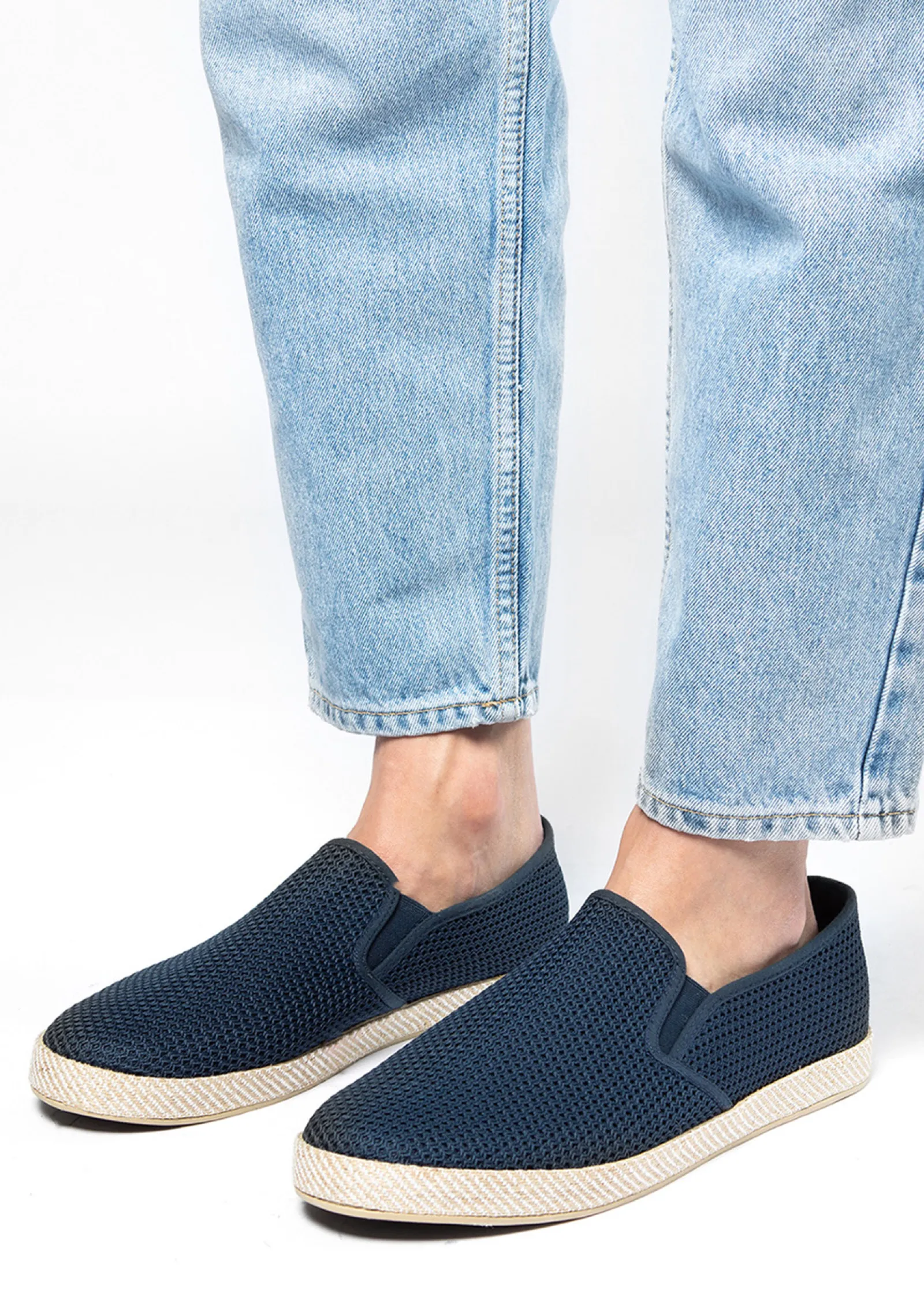 Donkerblauwe Canvas Loafers Met Geweven Touwzool^Sacha Fashion