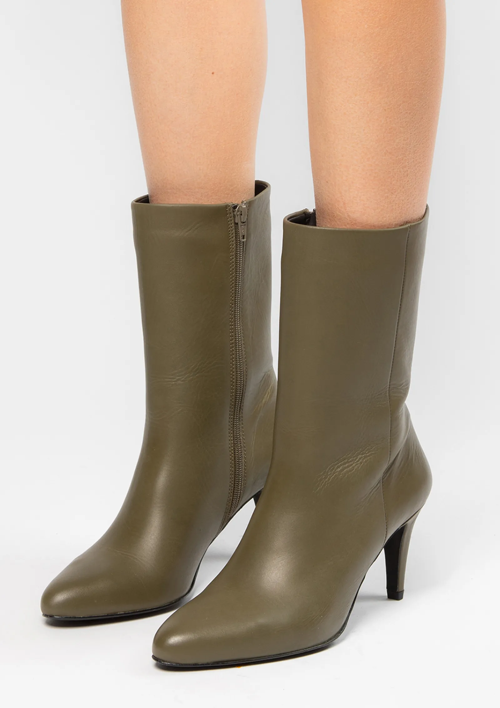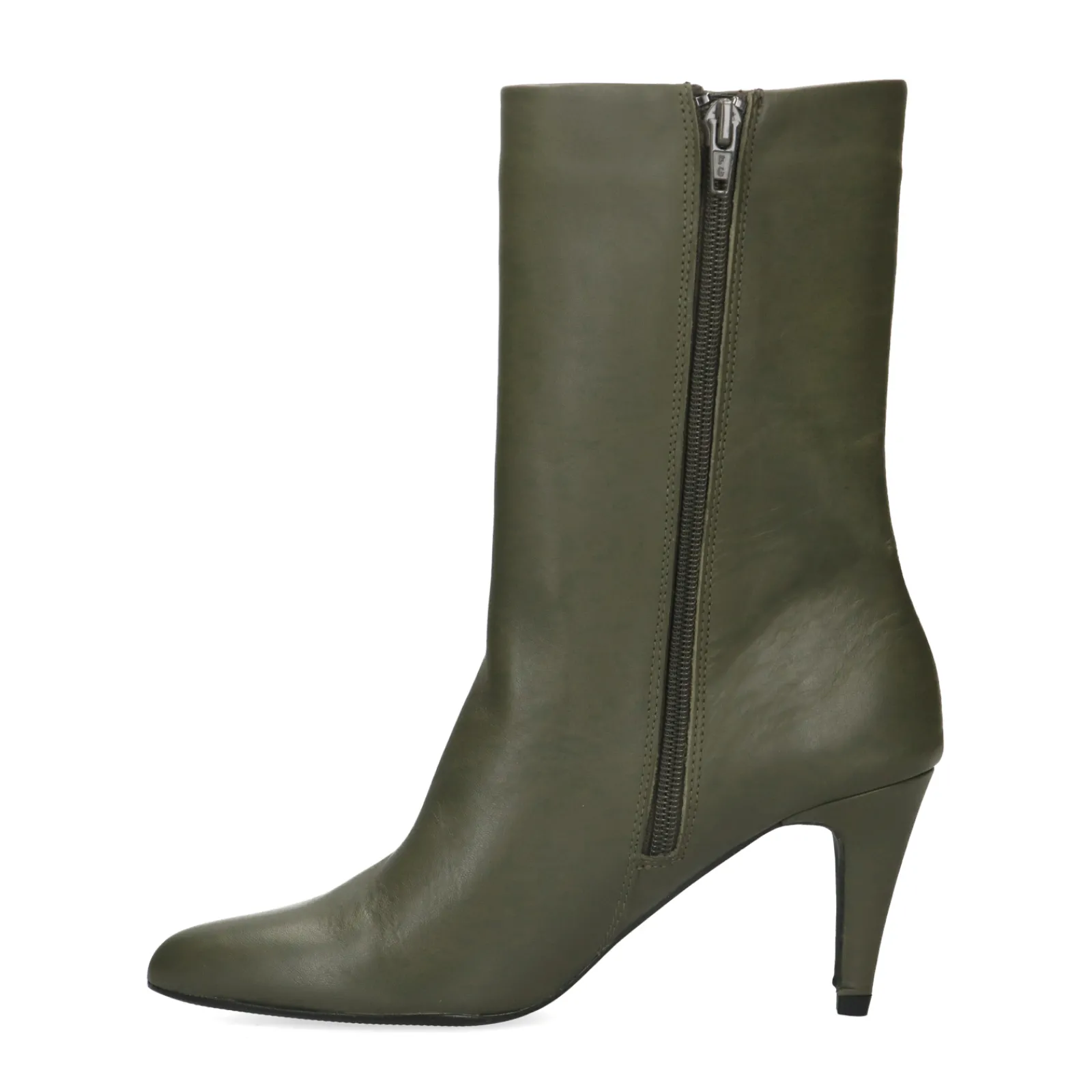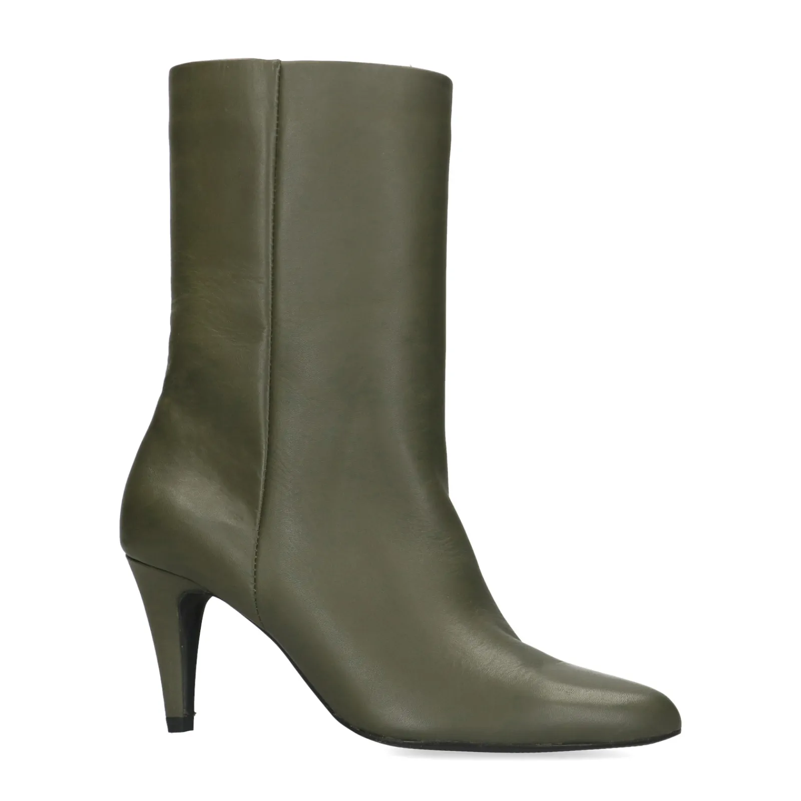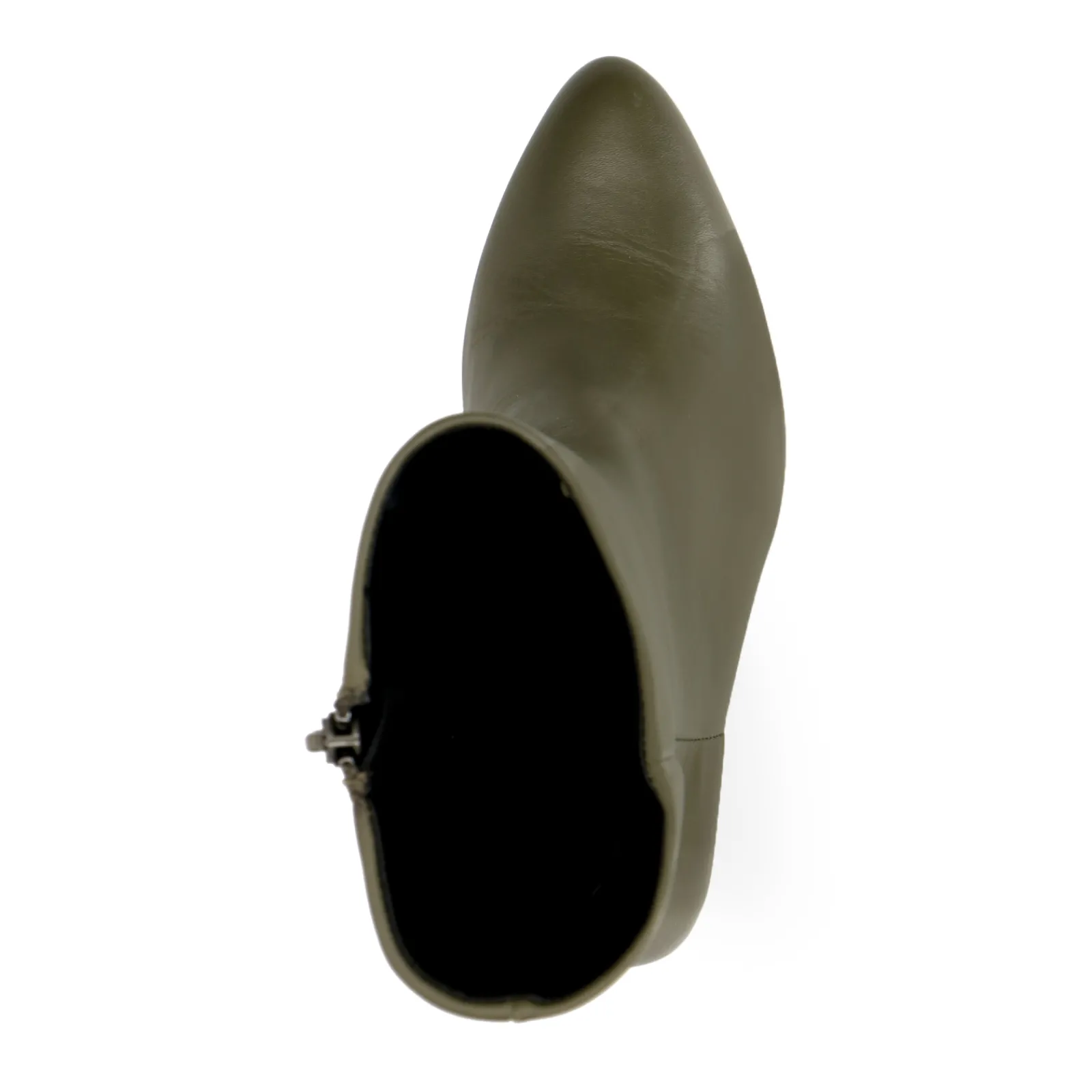 Donkergroene Leren Enkellaarsjes Met Naaldhak^Sacha Fashion