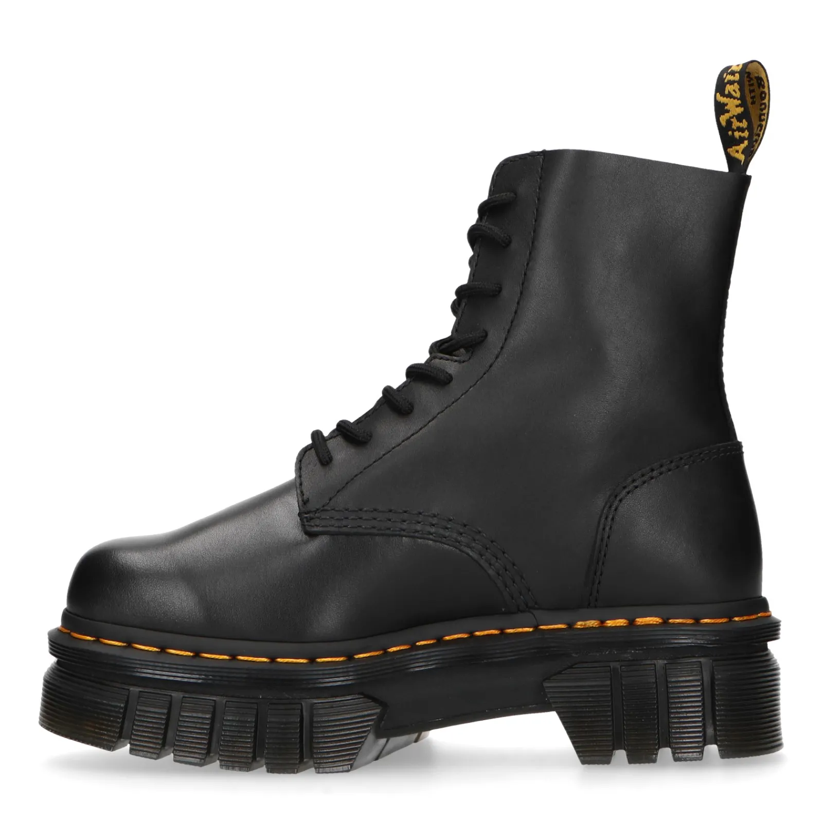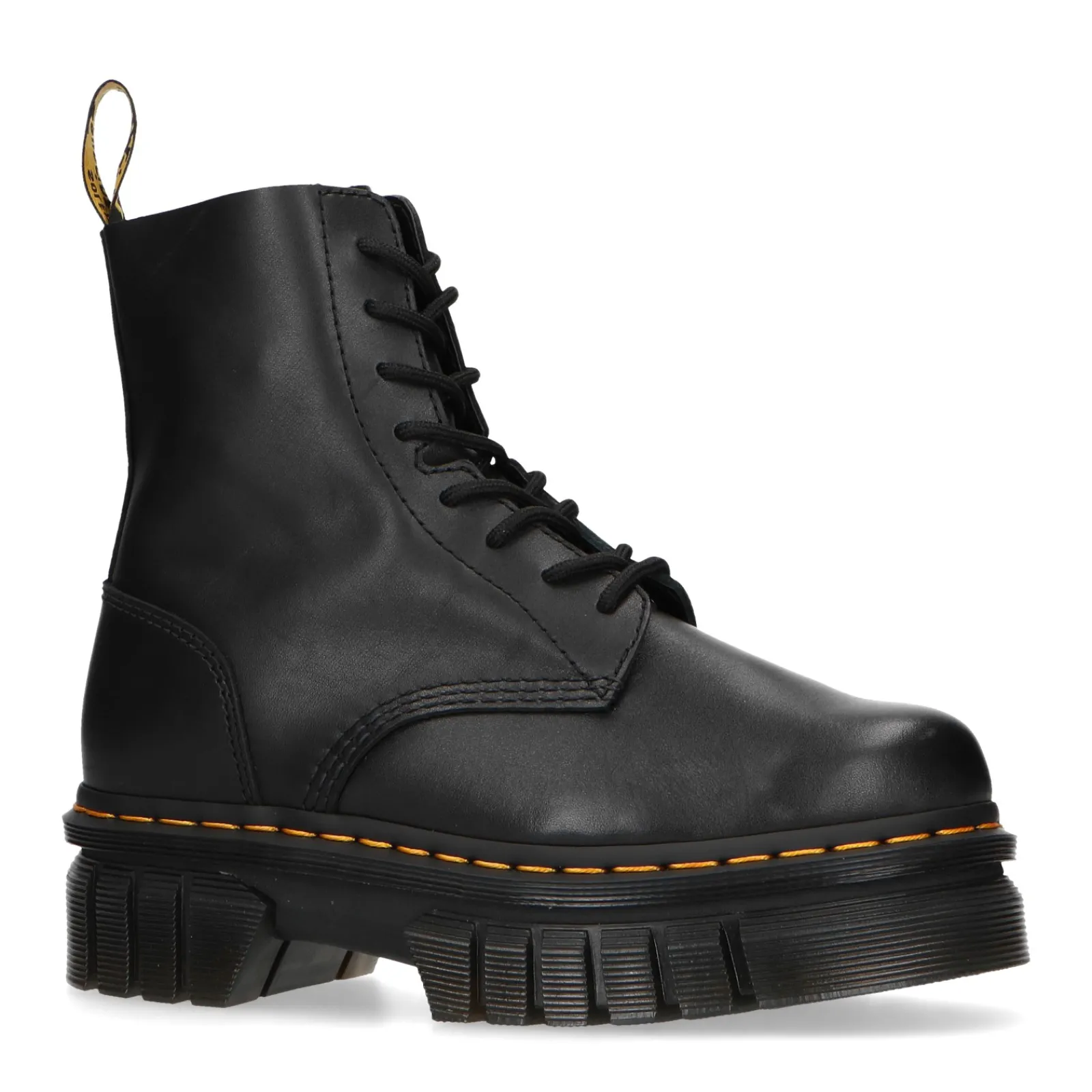Maak Een Statement Met Deze Dr. Martens Audrick Veterboots. Deze Leren Schoenen Hebben Zwarte Veters En De Nieuwste Neoteric Zool Die Zorgt Voor Veel Volume En Weinig Gewicht. De Laars Heeft Een Zooldikte Van 4 Cm En Een Hakhoogte Van 5 Cm. De Schachthoogte Is 16 Cm Met Een Schachtomtrek Van 25 Cm. Style Deze Toffe Laarzen Onder Een Jurkje Voor Een Edgy Effect. Verzorg Deze Laarzen Met Pure Protect Voor Langdurig Draagplezier.
