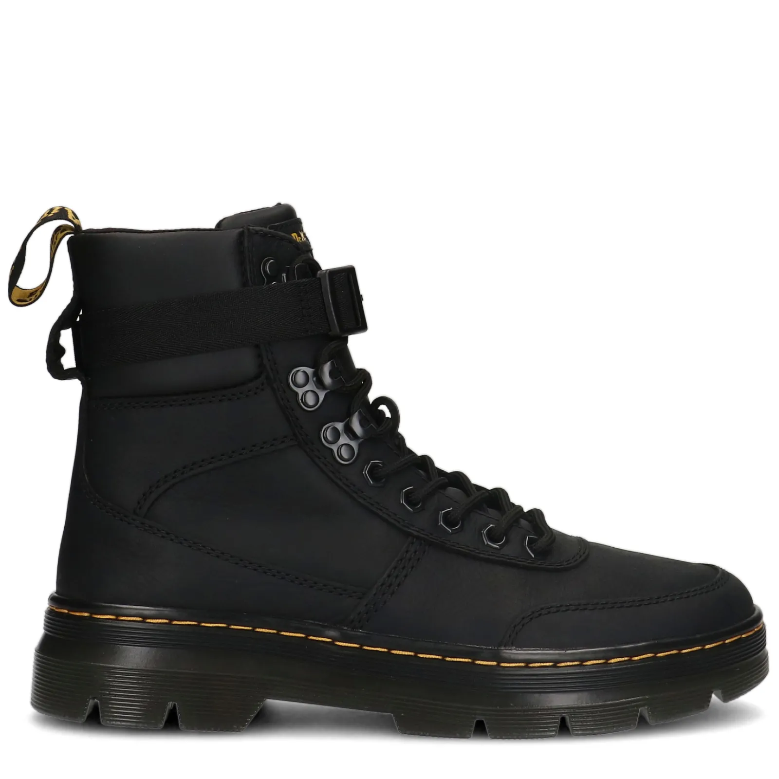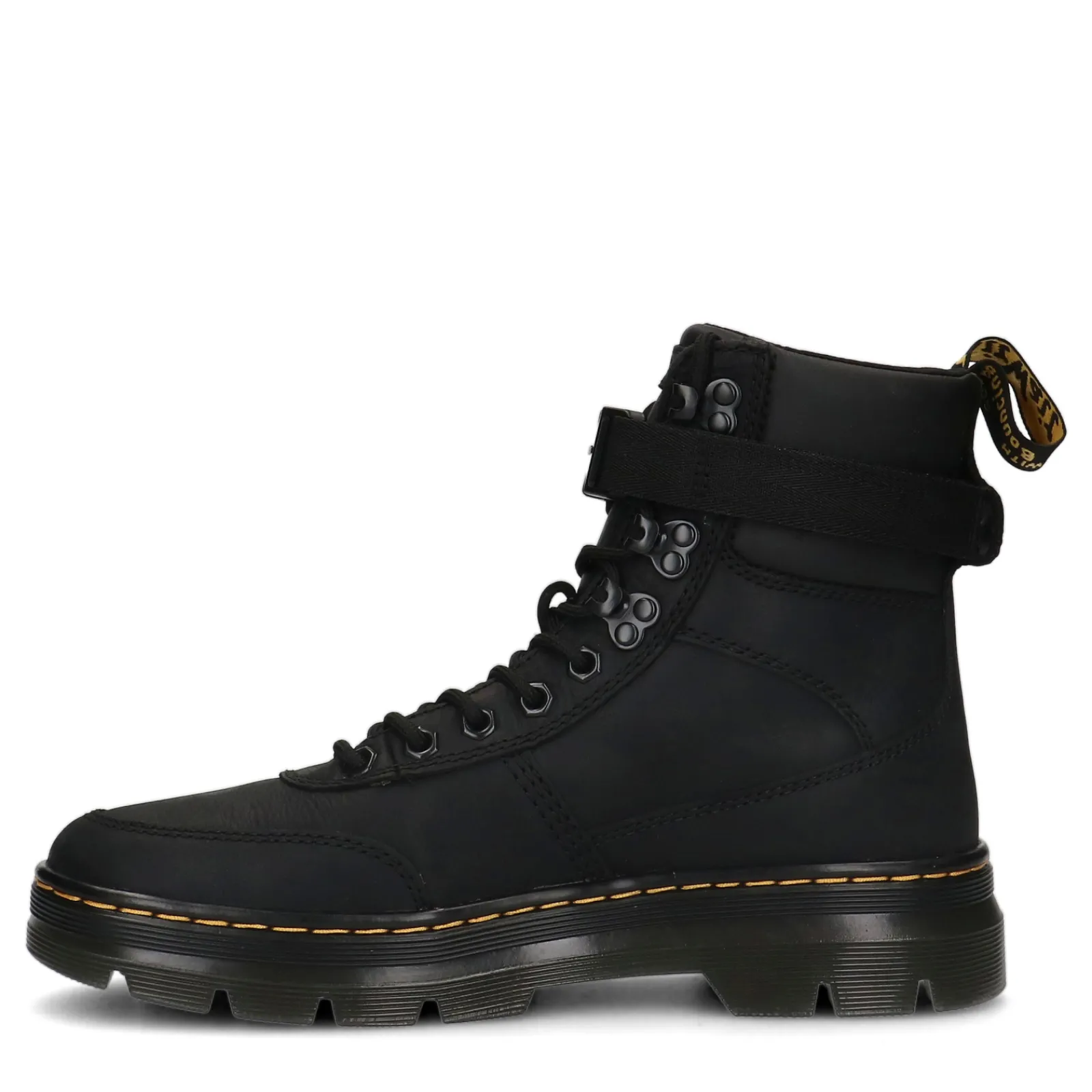 Deze Combs Tech Dr. Martens Laarzen Hebben Een Stoere Uitsraling En Zijn Gemaakt Van Duurzaam Materiaal. De Boots Zijn Aan De Buitenzijde Gemaakt Van Robuus Wyoming Leer Gecombineerd Met Pu Leer. De Riem Aan De Bovenkant Geeft De Boots Een Unieke Touch En Zorgt Voor Extra Comfort. De Dr. Martens Veterboots Zijn Afgewerkt Met De Traditionele Gele Stiksels En Een Bedrukte Hiellus. De Laarzen Hebben Een Schachthoogte Van 15 Cm En Een Schachtomtrek Van 30 Cm. Maak Gebruik Van De Juiste Onderhoudsproducten Voor Zo Lang Mogelijk Draag Plezier!