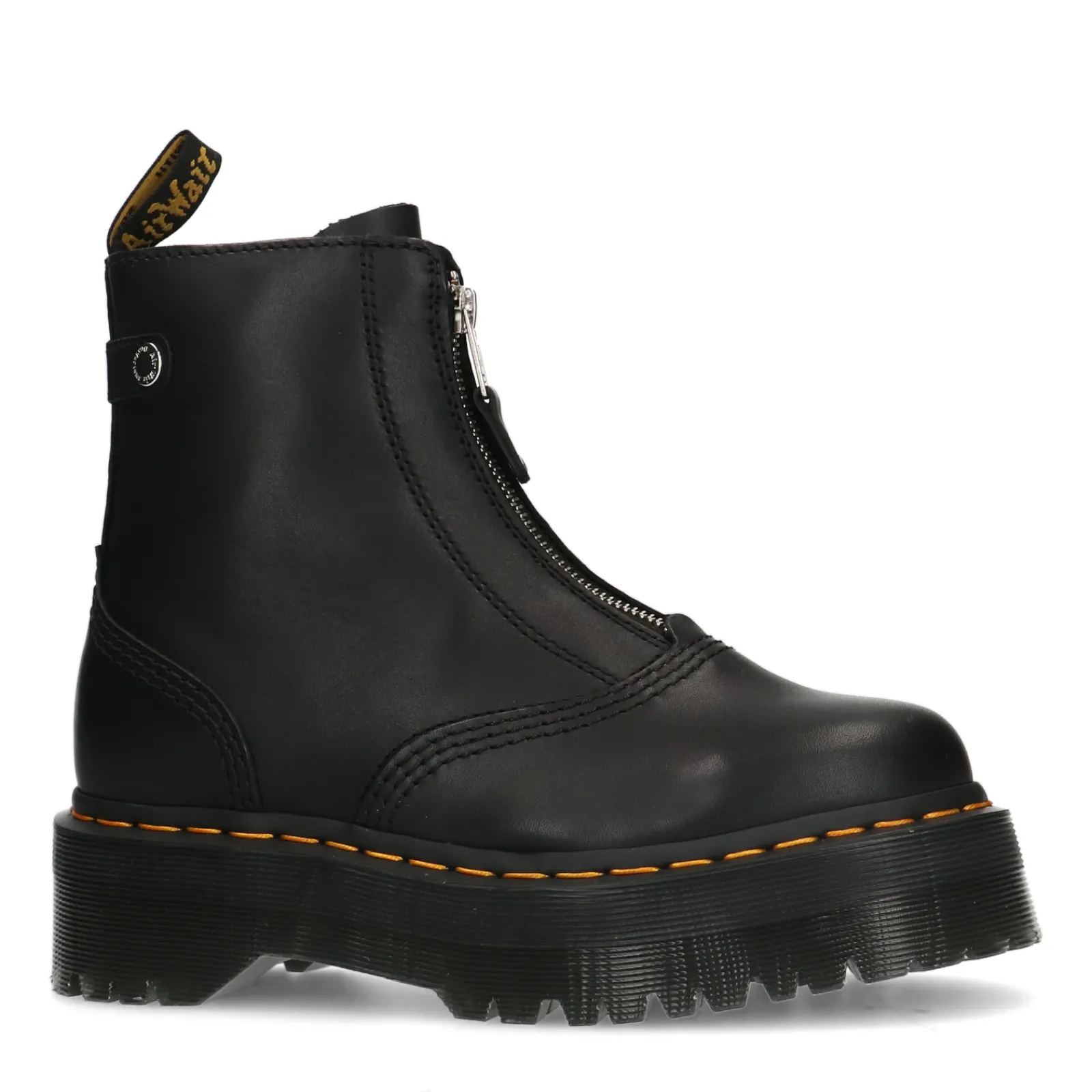 Dr. Martens Boots Met Een Twist! In Plaats Van De Bekende Vetersluiting Hebben Deze Platform Enkellaarsjes Een Zilverkleurige Rits. De Boots Zijn Aan De Buitenkant Gemaakt Van Nappa Leer En Hebben Een Platform Zool Van 4 Cm Hoog. Hierbij Hoort Een Schachthoogte Van 15 Cm En Een Schachtomtrek Van 27 Cm. Maak Gebruik Van De Juiste Onderhoudsproducten Om De Docs Zo Goed Mogelijk Te Verzorgen!