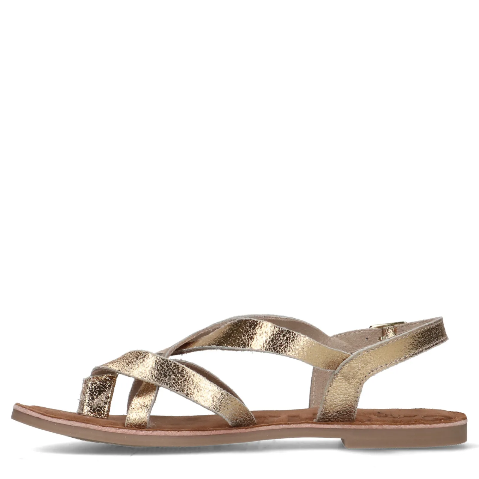 Gouden Leren Sandalen Met Gekruiste Bandjes^Sacha Hot