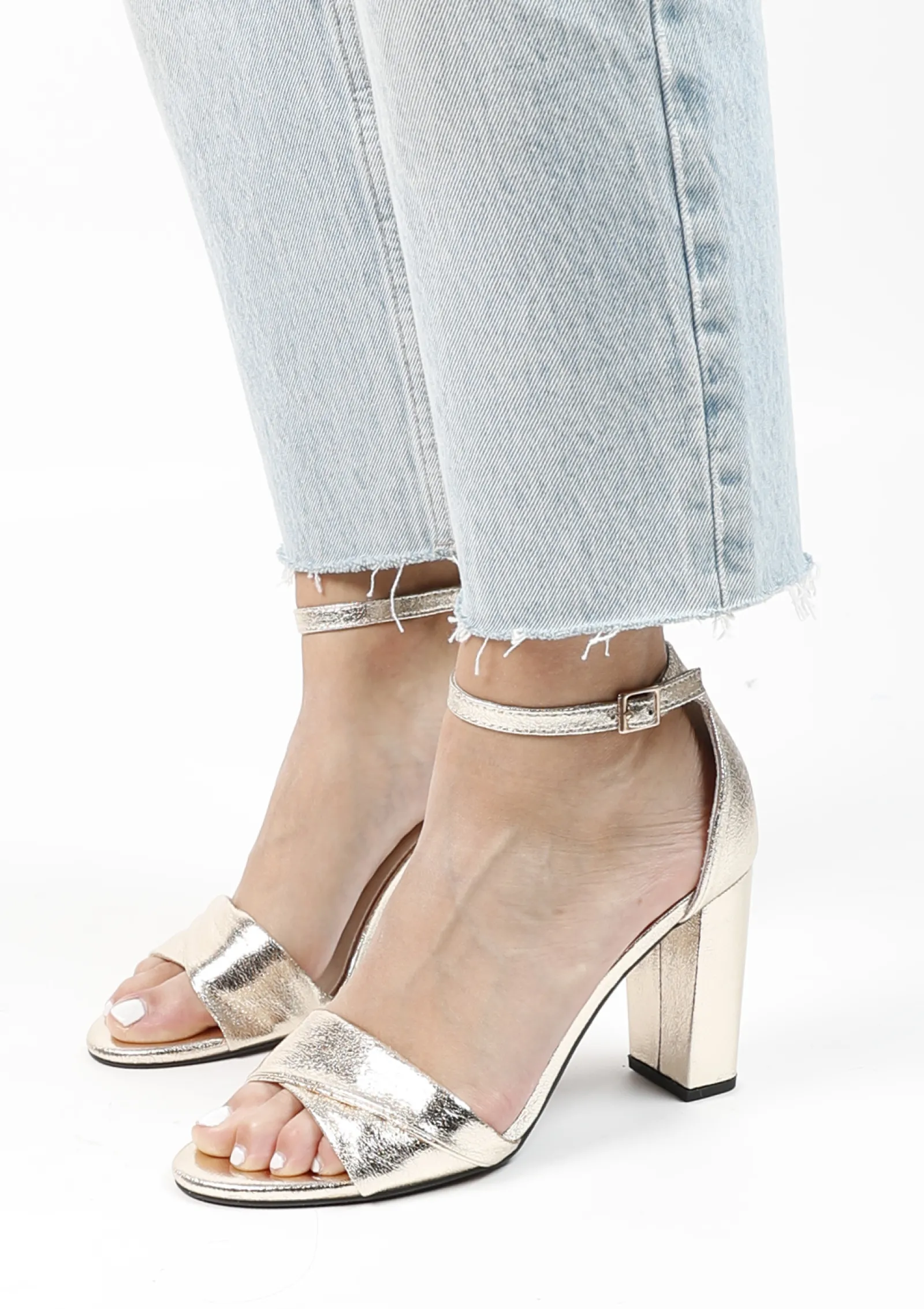 De Trend Van Het Moment: Schoenen In Metallic Tinten. Daarom Zijn Wij Een Groot Fan Van Deze Goudkleurige Sandalen Uit De Women Essentials Collectie Van Sacha. Het Zijn De Perfecte Hakken Als Finishing Touch Van Elk Mooie Party Outfit! Over De Voet Loopt Een Brede Band En Je Sluit De Sandalen Middels Een Gesp Om De Enkel. De Buitenzijde Is Gemaakt Van Synthetisch Materiaal En De Binnenzijde Van Leer. De Hak Heeft Een Hoogte Van 9 Cm. Draag Ze Onder Een Kort Jurkje Met Een Mooie Clutch En Een Paar Goudkleurige Sieraden & Je Party Outfit Is Van Top Tot Teen Gestyled. Maak Gebruik Van De Juiste Onderhoudsproducten.