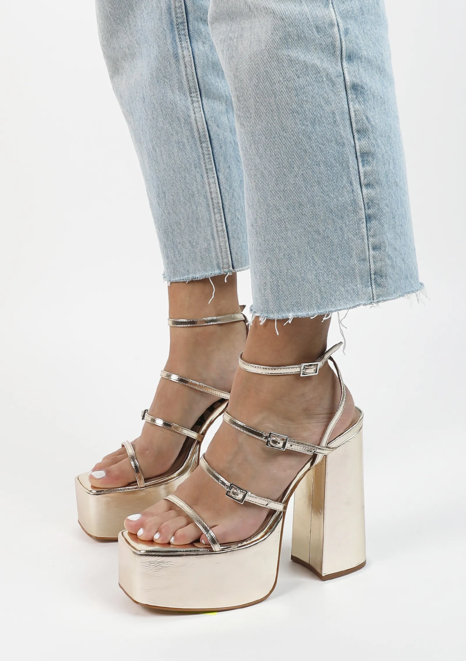 Oh My! Deze Goudkleurige Platform Sandal Heels Van Sacha Zijn Jouw Nieuwe Favoriet! De Sandalen Met Hak Hebben Een Plateau Van 5 Cm Hoog En Een Blokhak Van 14 Cm Hoog. De Haksandalen Hebben Vier Dunne Bandjes En Sluiten Middels Drie Zilverkleurige Gespen. De Binnenzijde Is Gemaakt Van Synthetisch Materiaal En De Buitenzijde Van Leer. Gebruik De Juiste Onderhoudsproducten!