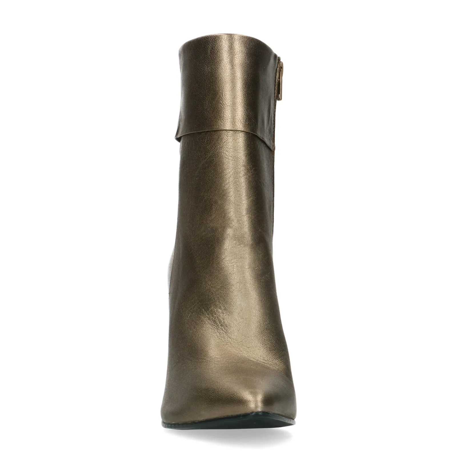 Deze Goudkleurige Enkellaarsjes Met Hak Van Sacha Hebben Matte Metallic Finish. De Laarsjes Hebben Aan De Bovenkant Een …