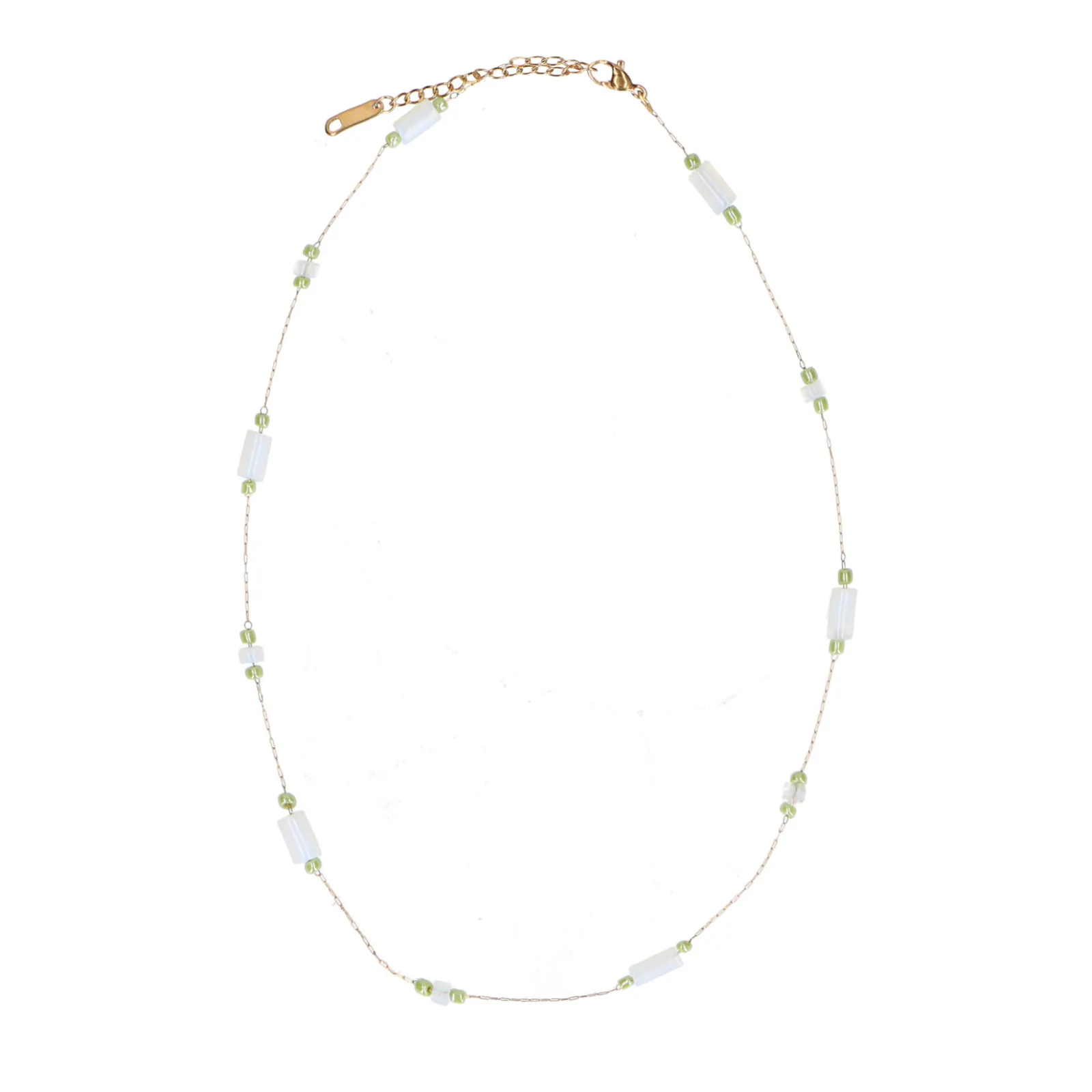 Deze Goudkleurige Ketting Van Sacha Is Gemaakt Van Stainless Steel En Afgewerkt Met Blauw/Groene Kraaltjes. De Ketting Heeft Een Totale Lengte Van 46 Cm. Combineer Deze Ketting Bij Jouw Necklace Layering!