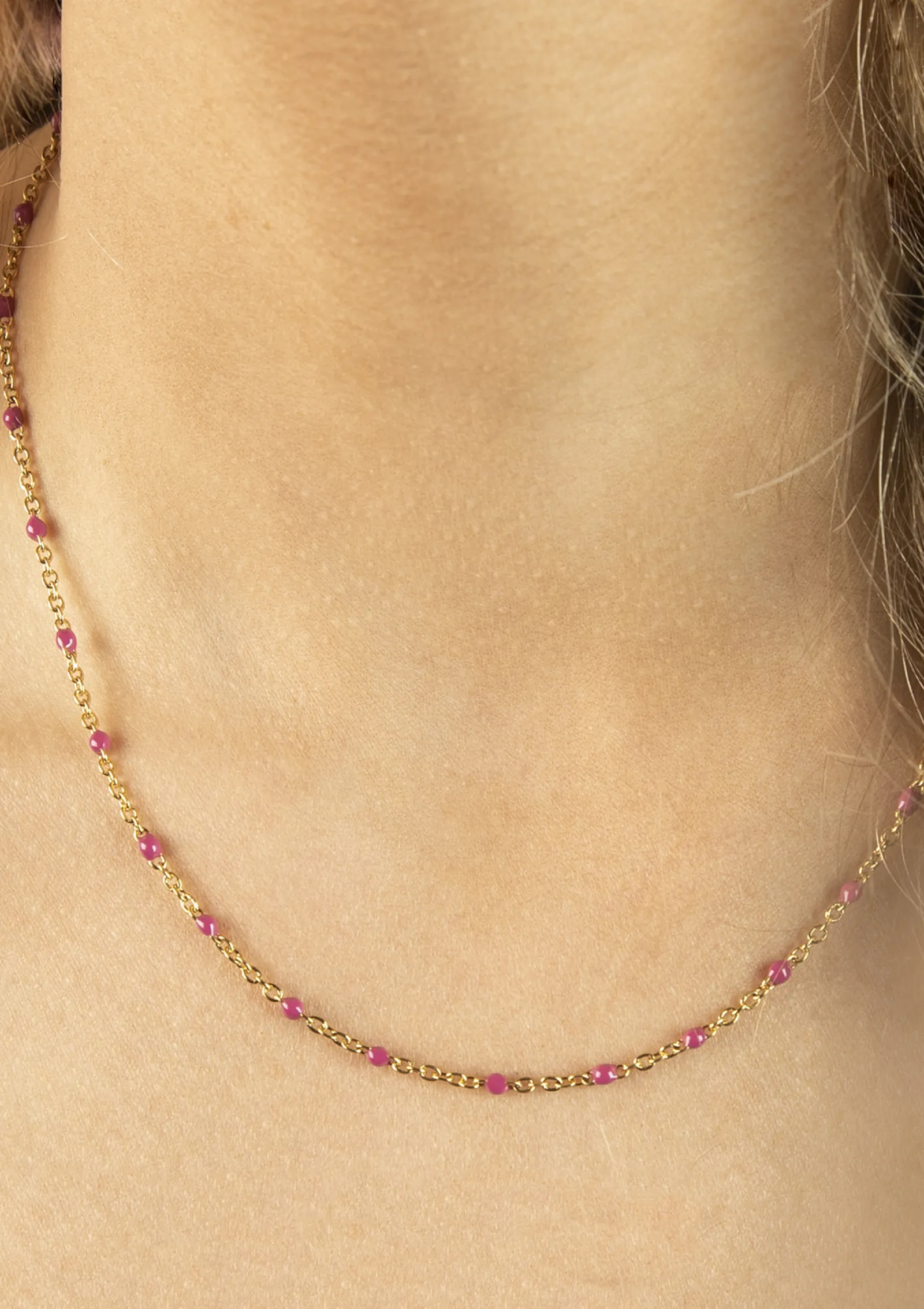 Deze Gold Plated Ketting Van Sacha Heeft Een Minimalistisch Design Met Kleine Roze Kraaltjes. Draag De Ketting In Combinatie Met Een Grovere Ketting Uit De Stainless Steel Collectie! De Totale Lengte Is 45 Cm.