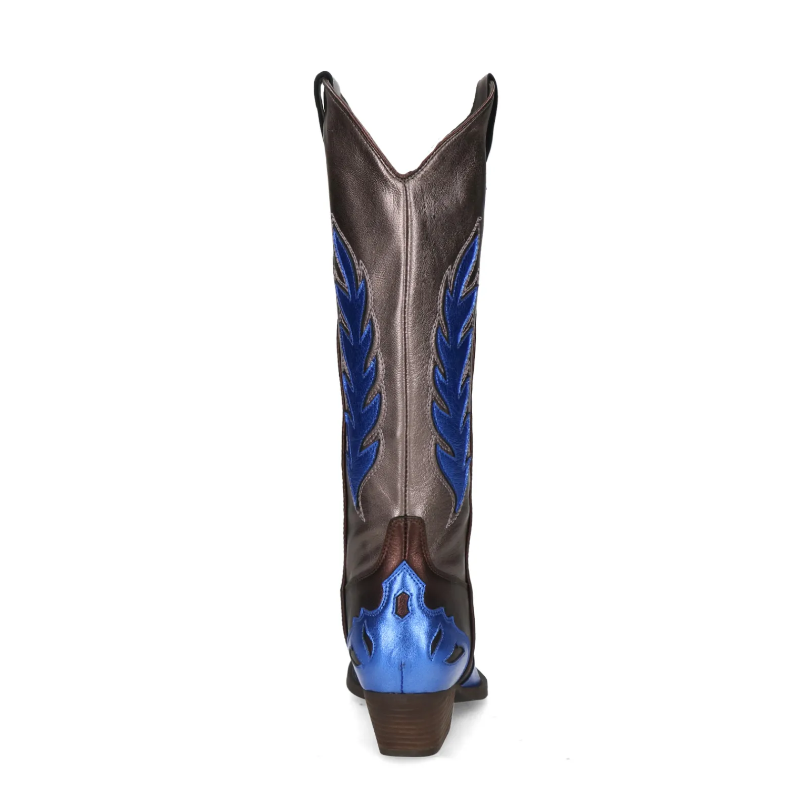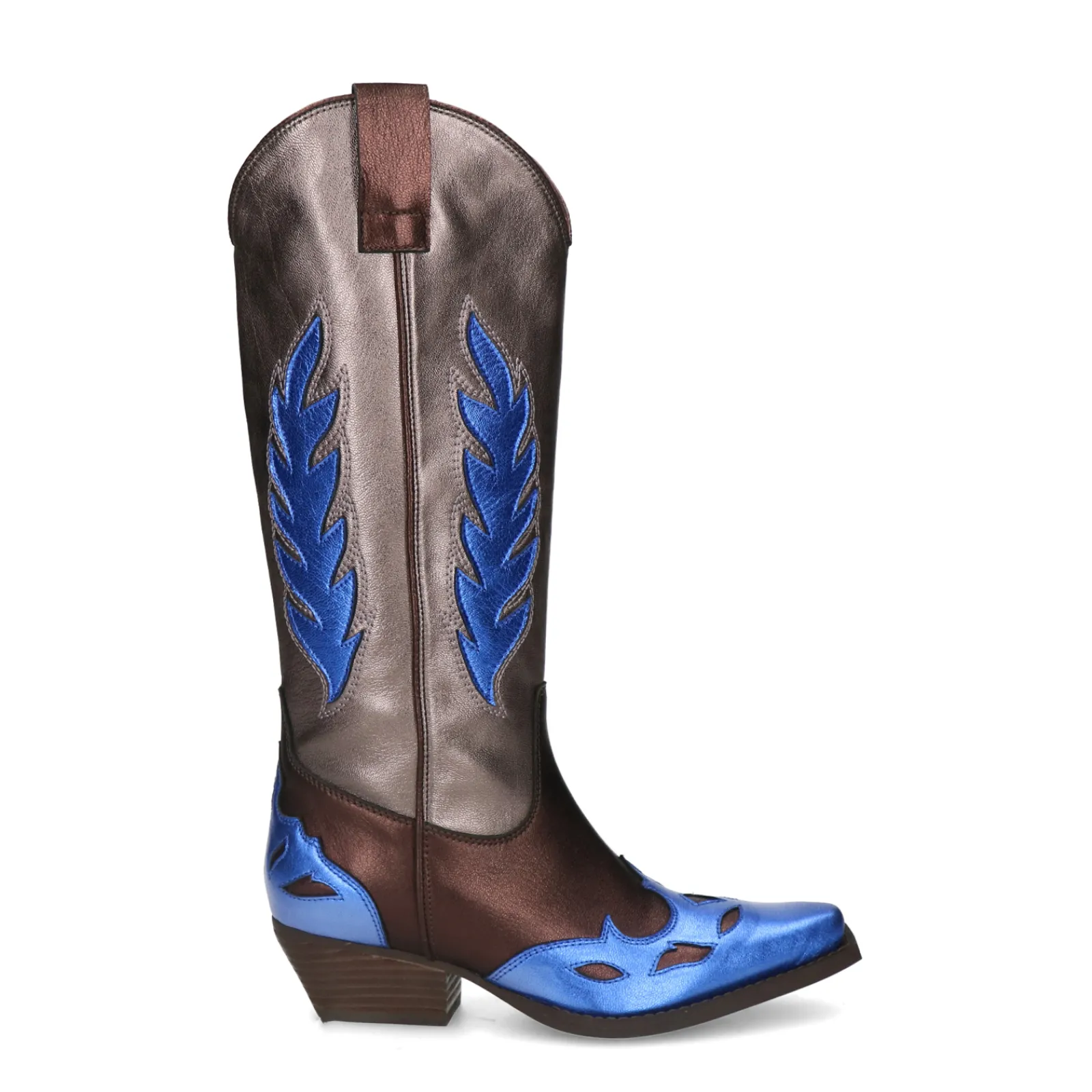 Grijs Metallic Cowboylaarzen Met Blauwe Details^Sacha Online