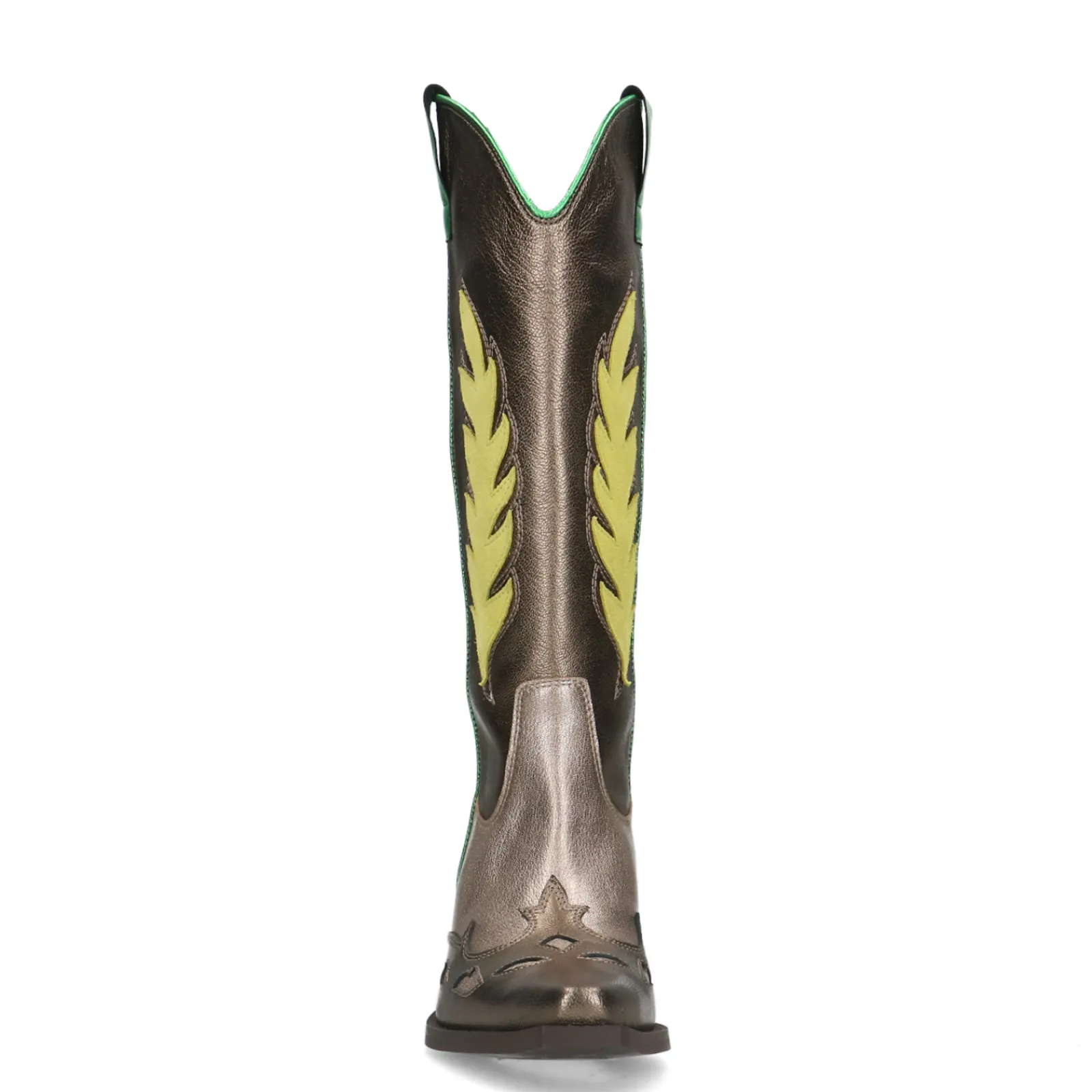 Wij Zijn Over De Moon Van Deze Leren Cowboylaarzen Van Sacha! De Grijze Metallic Boots Zijn Afgewerkt Met Gestikte Gele En Groene Metallic Details: De Perfecte Kleurencombinatie. Door De Traditionele Western Stiksels, Puntneus En Blokhak Van 5 Cm Hoog Voel Jij Jezelf Een Echte Cowgirl. Zowel De Binnen- Als Buitenkant Zijn Gemaakt Van Leer. De Schachthoogte Is 30 Cm En De Schachtomtrek 32 Cm. Maak Gebruik Van De Juiste Onderhoudsproducten Om Jaren Te Genieten Van Je Western Boots!