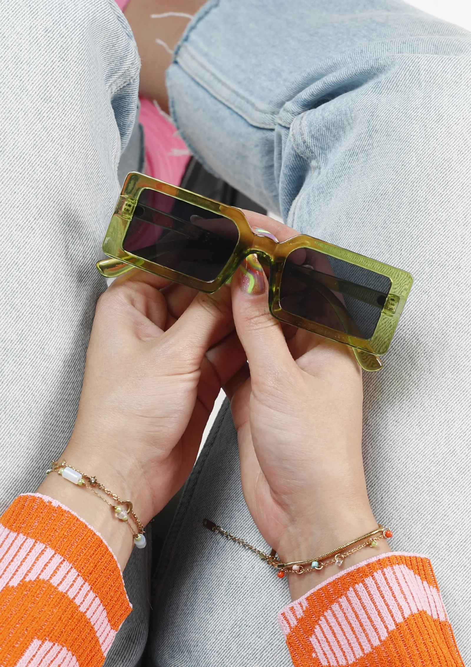 Groene Rechthoekige Zonnebril^Sacha Best Sale