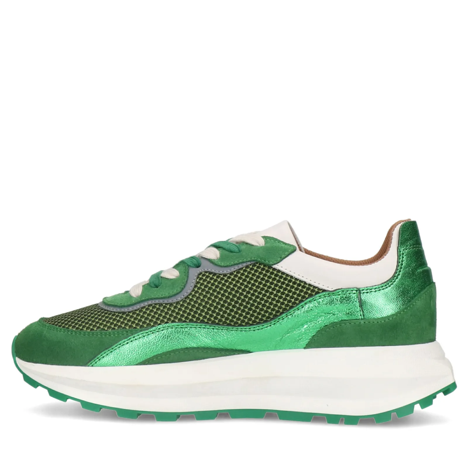 Deze Groene Leren Sneakers Van Sacha Hebben Suede Details, Groene Metallic Accenten En Een Grijs Detail Rondom De Veters. De Buiten- En Binnenzijde Zijn Gemaakt Van Leer. De Zool Van 3 Cm Heeft Een Licht Verhogende Hak Van 5 Cm, Wat De Sneakers Een Stoere Touch Geeft. Leuk Detail: De Sneakers Hebben Witte En Groene Veters. De Kleurrijke Details Zorgen Ervoor Dat De Sneakers Echte Eyecatchers Zijn. Maak Gebruik Van De Juiste Onderhoudsproducten Om Extra Lang Van Je Schoenen Te Genieten.