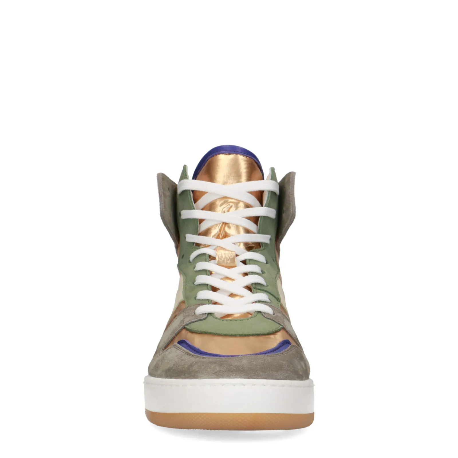 Deze Leren Halfhoge Sneakers Van Sacha Hebben De Perfecte Combinatie Van Verschillende Kleuren En Materialen. De Sneakers Zijn Afgewerkt Met Paarse En Metallic Goude Details. De Sneakers Hebben Een Hakhoogte Van 4 Cm Met Een Zooldikte Van 2 Cm. Take Care Of Them! Gebruik De Juiste Onderhoudsproducten.