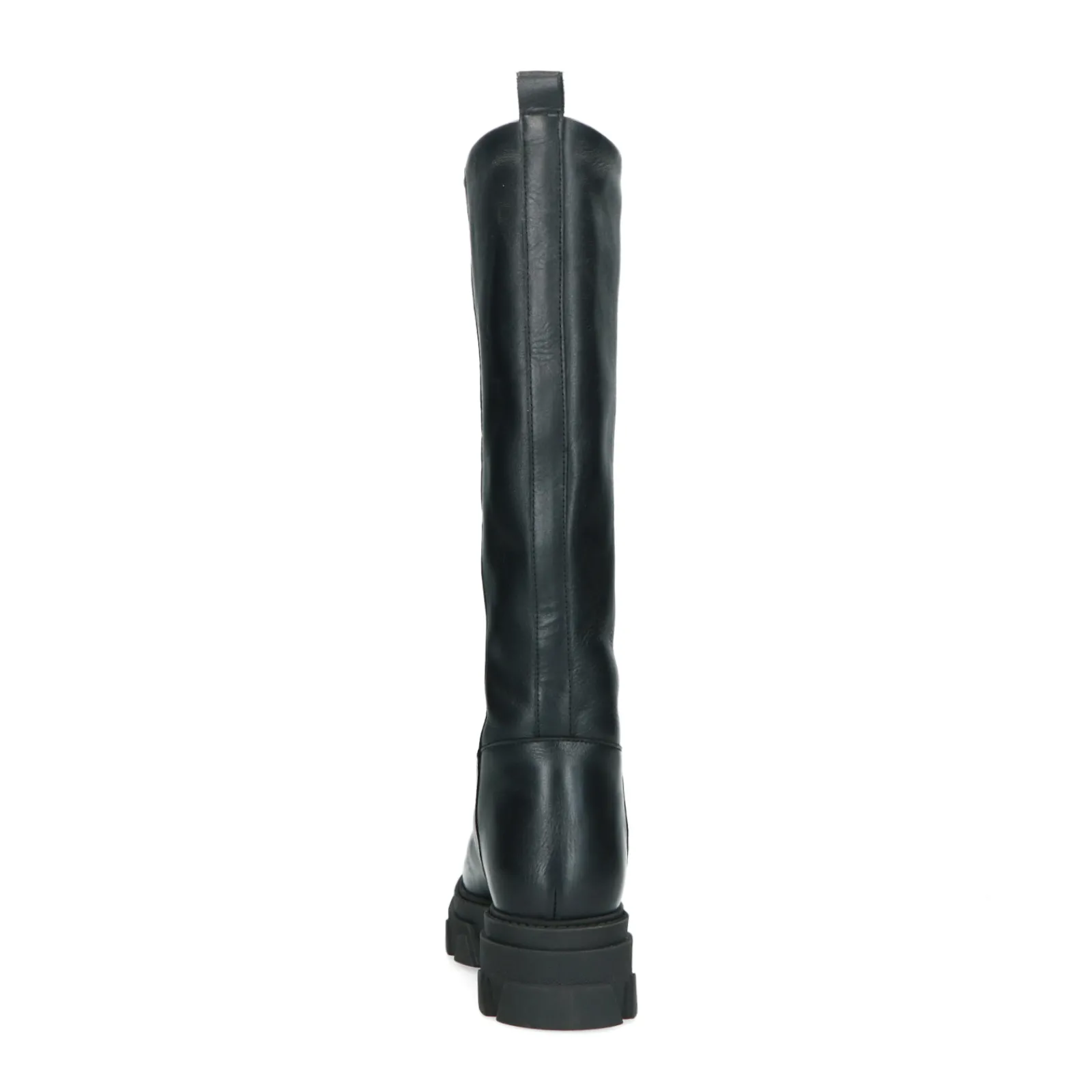 Wij Zijn Erg Fan Van Deze Hoge Zwarte Laarzen Uit De Women Iconic Van Sacha! De Binnen- En Buitenzijde Van Deze Laarzen Zijn Gemaakt Van Leer. De Grove Plateauzool Heeft Een Hoogte Van 3 Cm En De Hakhoogte Van Deze Laarzen Is 4 Cm. Deze Zool Geeft Net Wat Extra Detail Aan Jouw Outfit. De Schachthoogte Van Deze Laarzen Is 38 Cm Hoog En De Schachtomtrek Is 40 Cm. Combineer Ze Met Een Wijde Jurk Of Over Een Jeans Voor Een Casual Look. Maak Gebruik Van De Onderhoudsproducten Anti Aging, Pure Protect Of Color Boost Black Om Zo Lang Mogelijk Te Genieten Van Jouw Nieuwe Hoge Laarzen.
