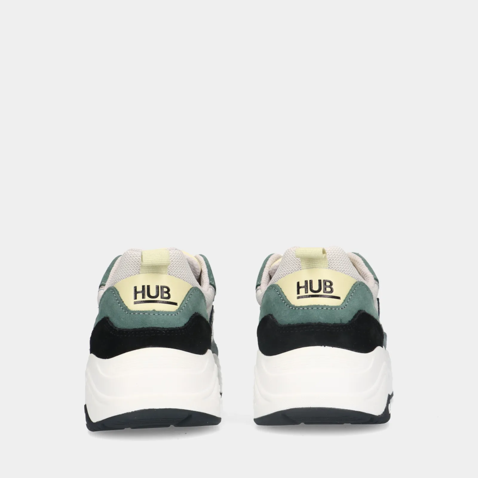 Glide S43 Light Beige/White/Leaf Green Dames Sneakers Van Het Merk Hub. De Lage Sneakers Hebben Een Uniek En Chunky Uite…