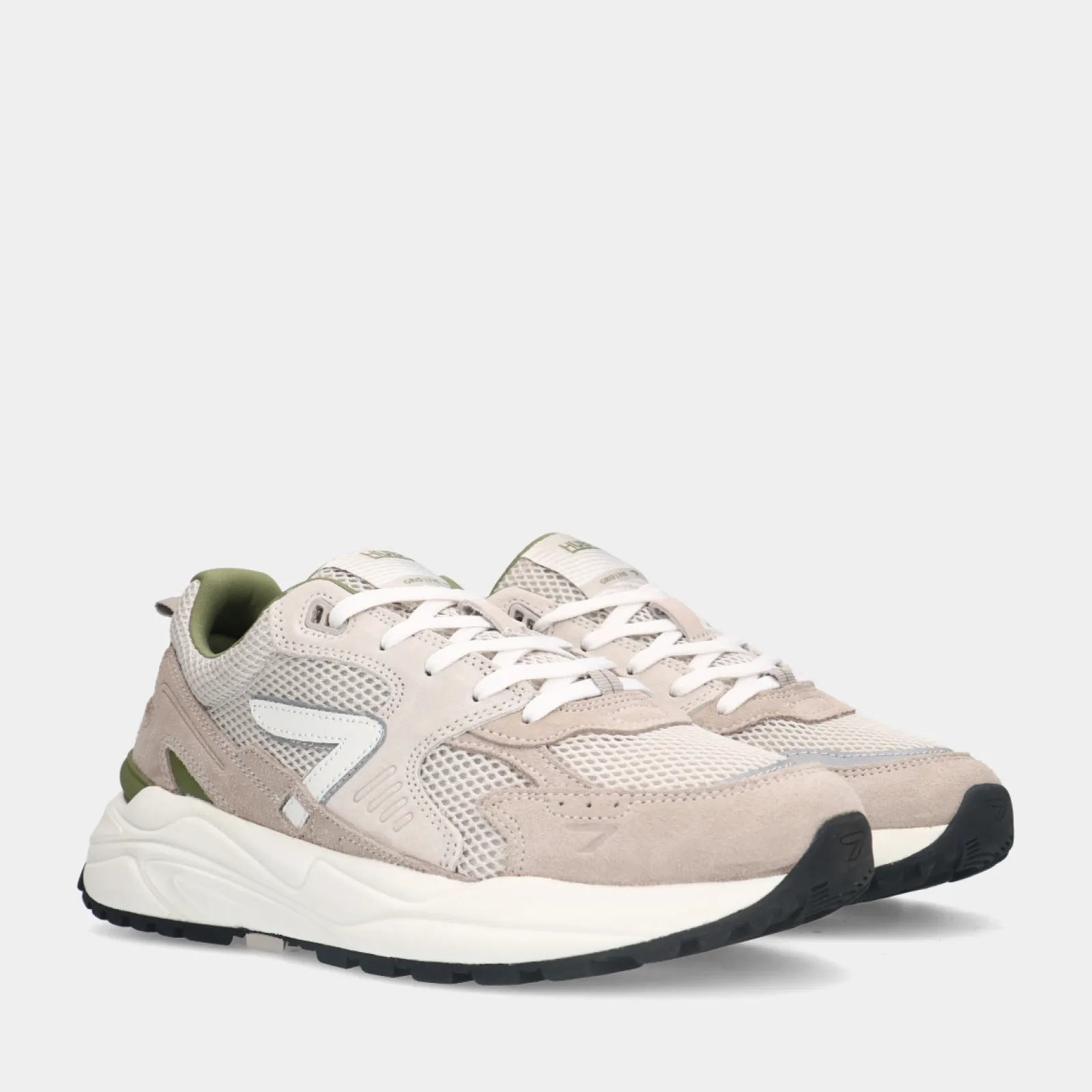 Grid-M S48 Light Beige/Off White/Moss Green Heren Sneakers Van Het Merk Hub. De Lage Sneakers Hebben Een Tijdloos En Spo…