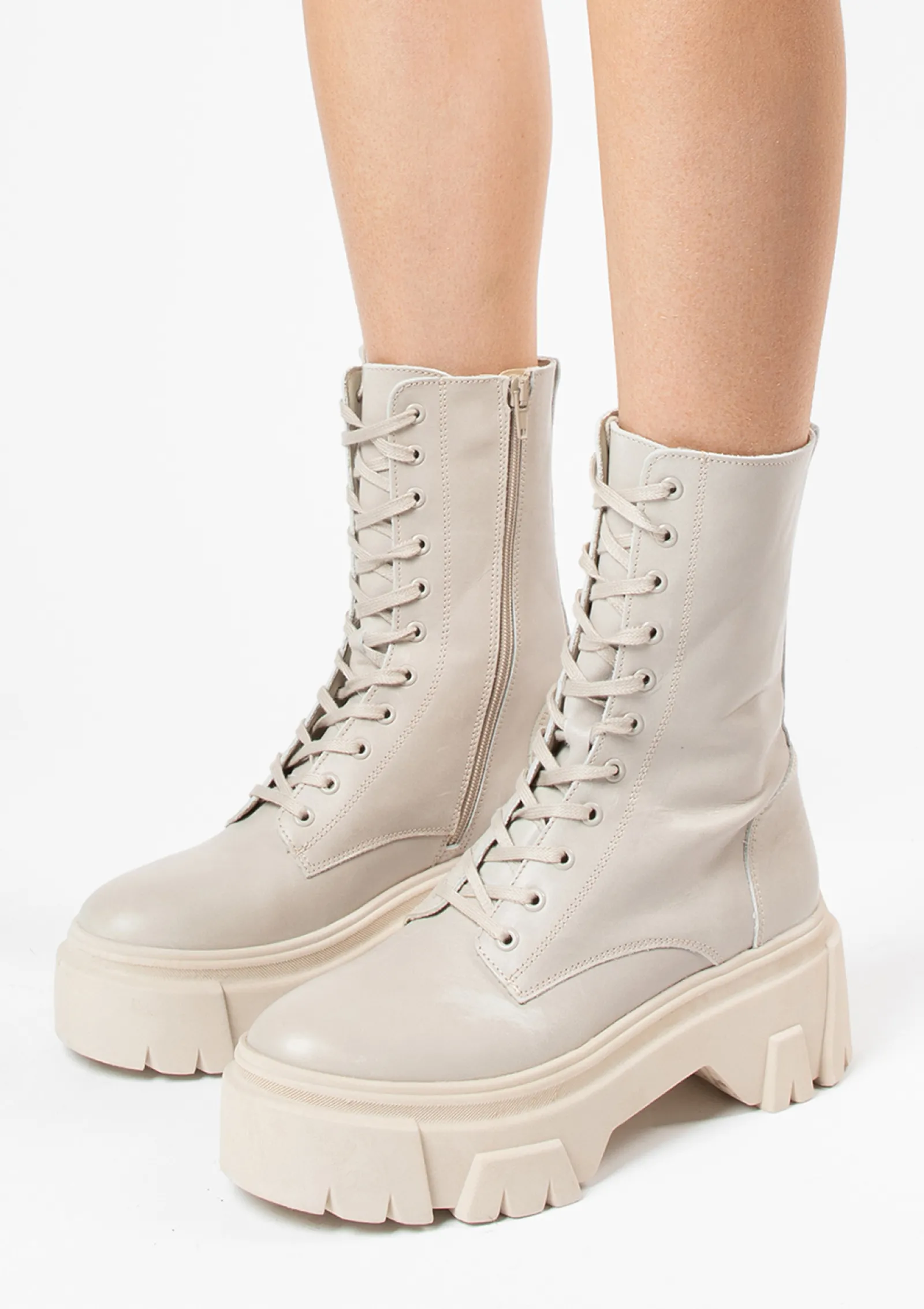 Deze Latte Veterlaarsjes Van Sacha Zijn Musthaves Voor In Je Collectie! Doordat Ze Gemaakt Zijn Van Leer Hebben De Boots Een Hoogwaardig Loopcomfort. De Statementzool Van 4 Cm Geeft De Laars Een Stoer Karakter. Verder Hebben De Boots Een Hakhoogte Van 5 Cm, Een Schachthoogte Van 18 Cm En Een Schachtomtrek Van 26 Cm. Verzorg De Laarsjes Met Pure Protect Voor Een Langdurig Draagplezier.