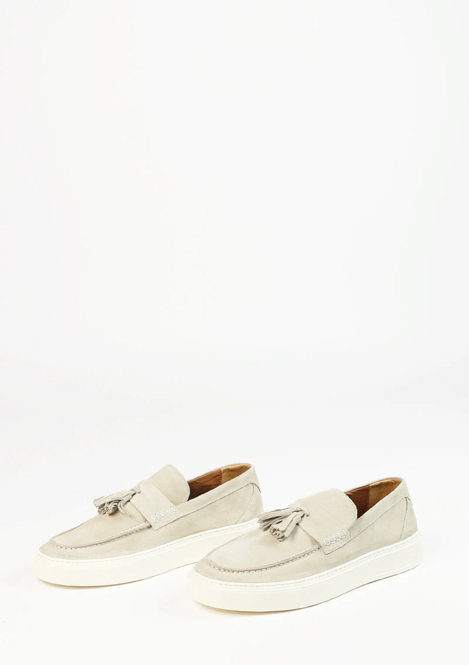Lichtgrijze Suede Loafers Met Kwastjes^Sacha Best