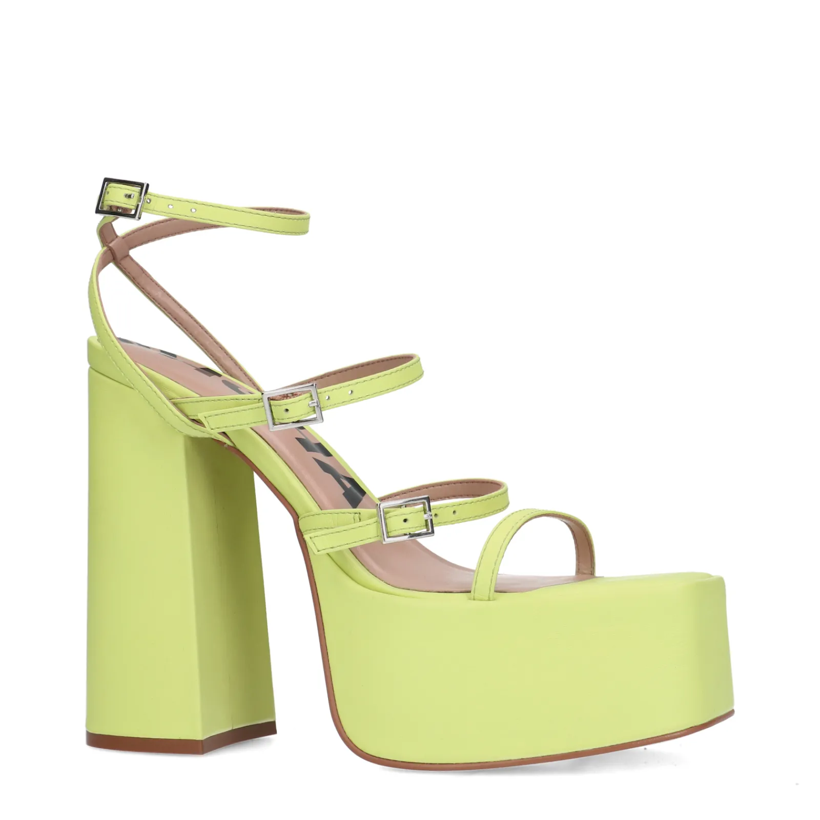 Oh My! Deze Limegroene Platform Sandal Heels Van Sacha Zijn Jouw Nieuwe Favoriet! De Sandalen Met Hak Hebben Een Plateau Van 5 Cm Hoog En Een Blokhak Van 14 Cm Hoog. De Haksandalen Hebben Vier Dunne Bandjes En Sluiten Middels Drie Zilverkleurige Gespen. De Binnenzijde Is Gemaakt Van Syntetisch Materiaal En De Buitenzijde Van Leer. Gebruik De Juiste Onderhoudsproducten!