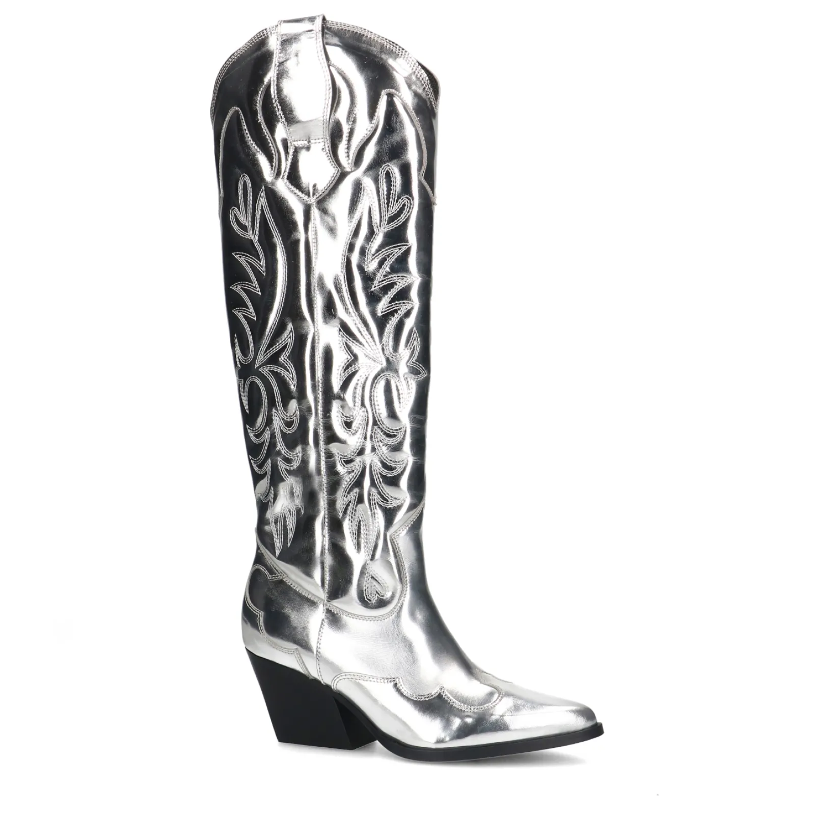 Deze Exclusieve Limited Edtion Metallic Cowboylaarzen Van Sacha Zijn Echte Showstoppers! Het Hoge Metallic Western Model Geeft Extra Spice Aan Jouw Look Met Als Finishing Touch Een Blokhak Van 9 Cm Hoog. De Zilverkleurige Western Laarzen Zijn Geheel Gemaakt Van Leer En Zijn Aan De Buitenzijde Afgwerkt Met Doorgestikte Puffer Details. De Schachthoogte Is 45 Cm En De Schachtomtrek Meet 38 Cm. Maak Gebruik Van De Juiste Onderhoudsproducten Om Jouw Dream Boots Zo Goed Mogelijk Te Verzorgen!