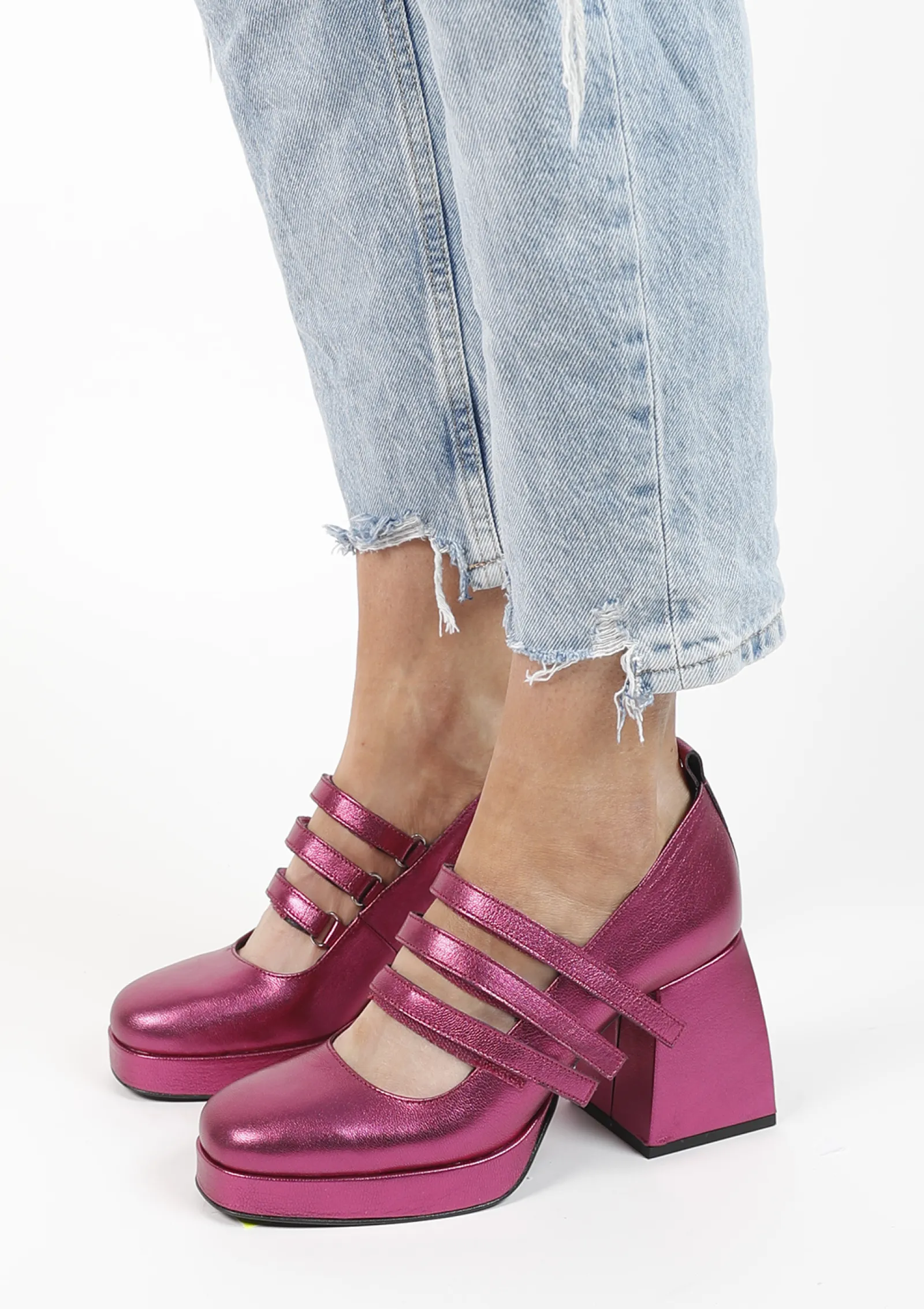 Deze Iconic Plateau Pumps Van Sacha Hebben Verschillende Opvallende Kenmerken. De Gesloten Pumps Zijn Geheel Gemaakt Van Leer En Hebben 3 Klittenbandjes Op De Wreef Van De Voet. De Roze Metallic Schoenen Hebben Een Blokhak Van 9 Cm En Een Plateau Van 2 Cm. Maak Gebruik Van De Juiste Onderhoudsproducten.