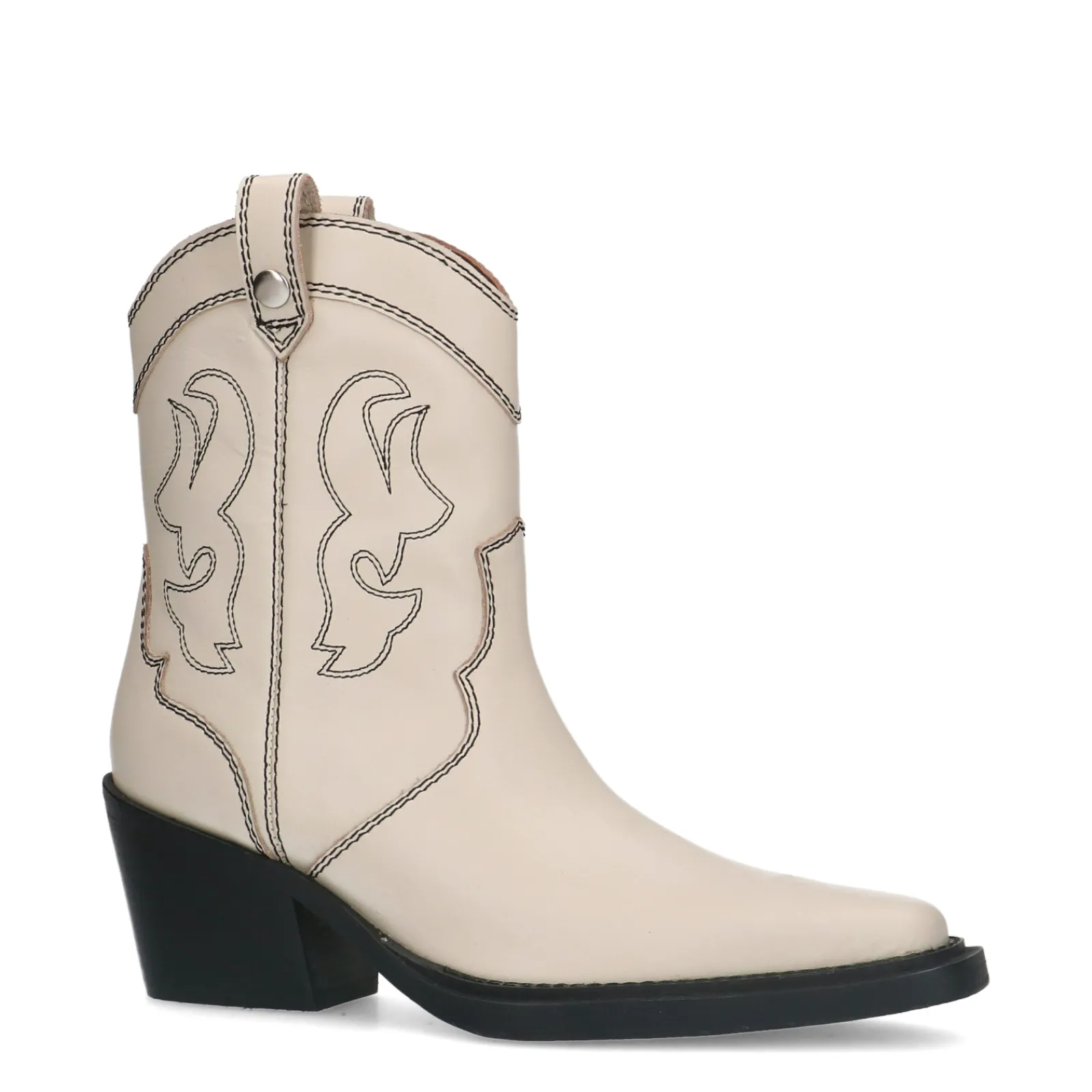 Off White Leren Cowboylaarzen Met Zwarte Sierstiksels^Sacha New