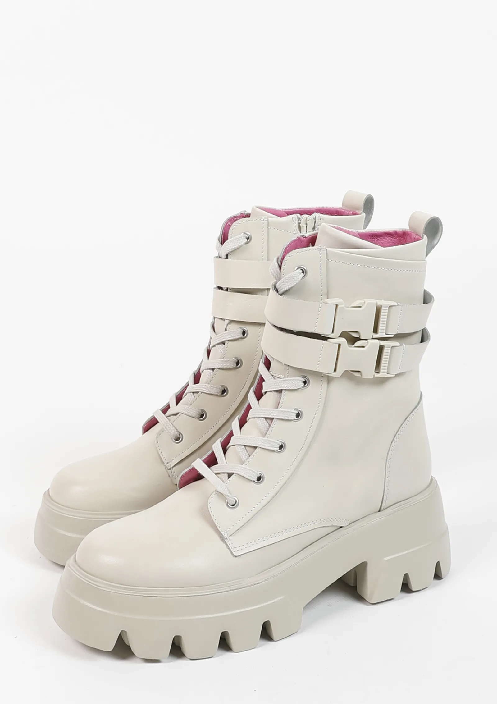 Deze Off White Leren Veterlaarsjes Van Sacha Hebben Een Stoer Karakter In Combinatie Met De Gespen Aan De Buitenzijde. De Boots Hebben Een Ritssluiting Aan De Binnenkant En Sluiten Middels Een Veter. De Enkellaarsjes Zijn Aan De Binnen- En Buitenkant Gemaakt Van Leer En Hebben Eeen Chunky Zool. De Veterlaarzen Hebben Een Hak Van 8 Cm. Maak Gebruik Van De Juiste Onderhoudsproducten!