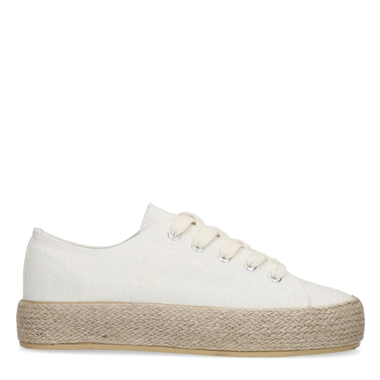 Talkin About An Essential! Deze Off White Canvas Sneakers Zijn Afkomstig Uit De Women Essentials Collectie. De Buitenzijde Van De Schoenen Is Gemaakt Van Canvas, De Binnenzijde Van Textiel En De Zool Van Synthetisch Materiaal. De Sneakers Zijn Voorzien Van Een Trendy Touwzool Waardoor Ze Een Zomerse Look Hebben. Combineer De Schoenen Met Een Jeans Of Een Zomerjurkje Voor Een Stijlvolle Outfit.