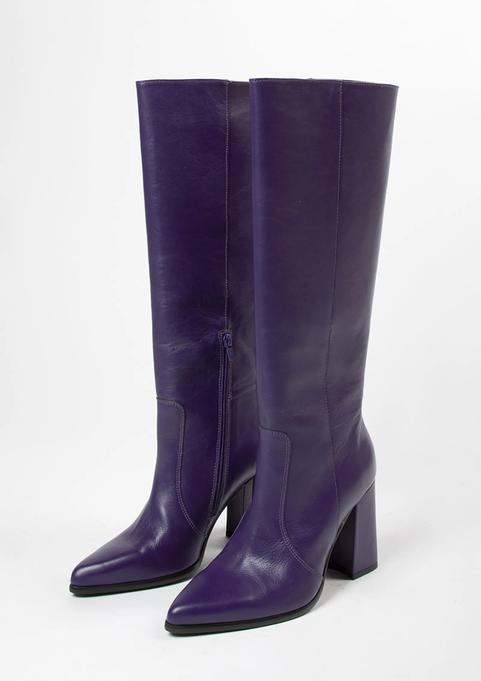 Paarse Kniehoge Leren Laarzen Met Hak^Sacha Best Sale