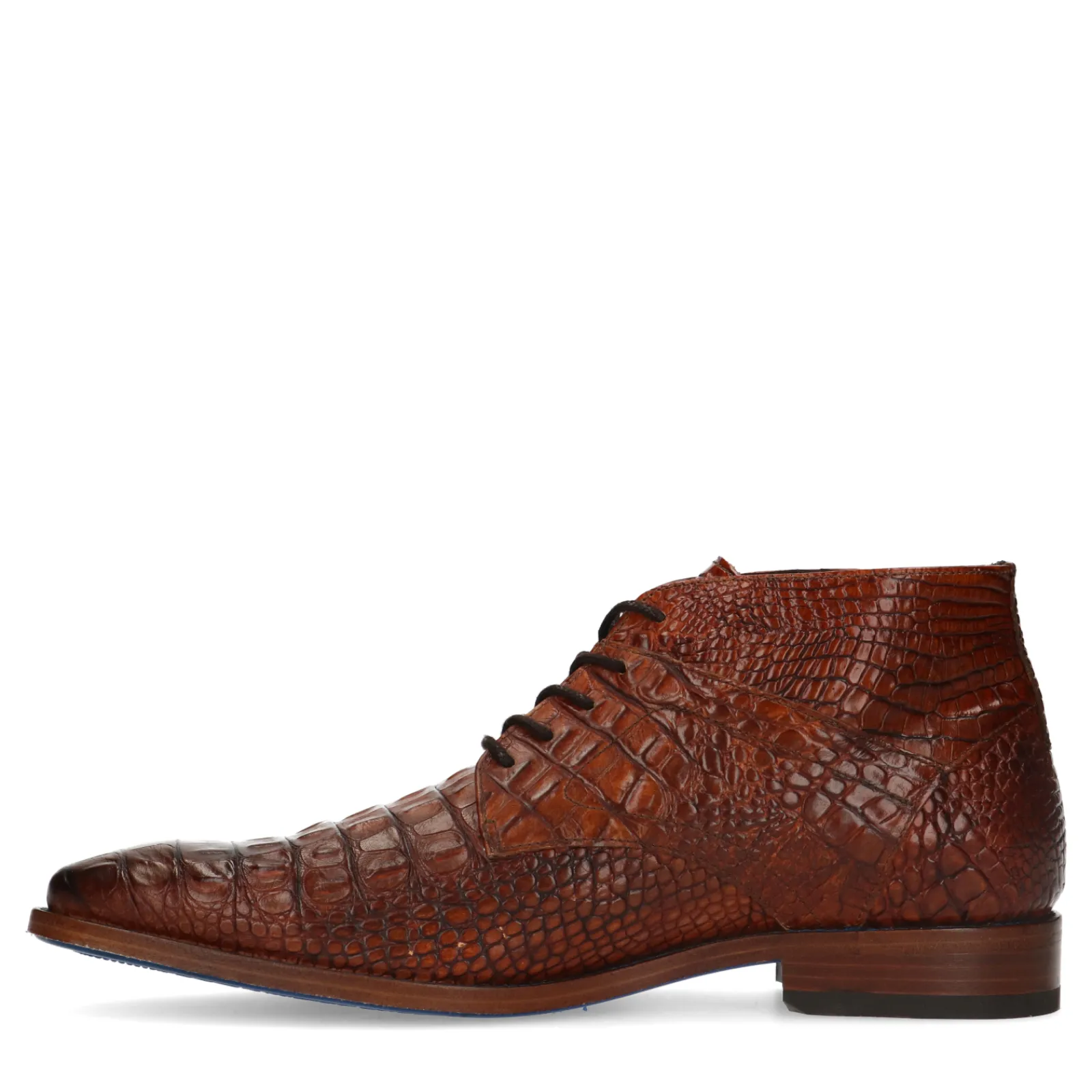 Bruine Veterschoenen Met Crocoprint Van Rehab. De Schoenen Zijn Aan De Binnen- En Buitenzijde Gemaakt Van Leer. Maak Geb…