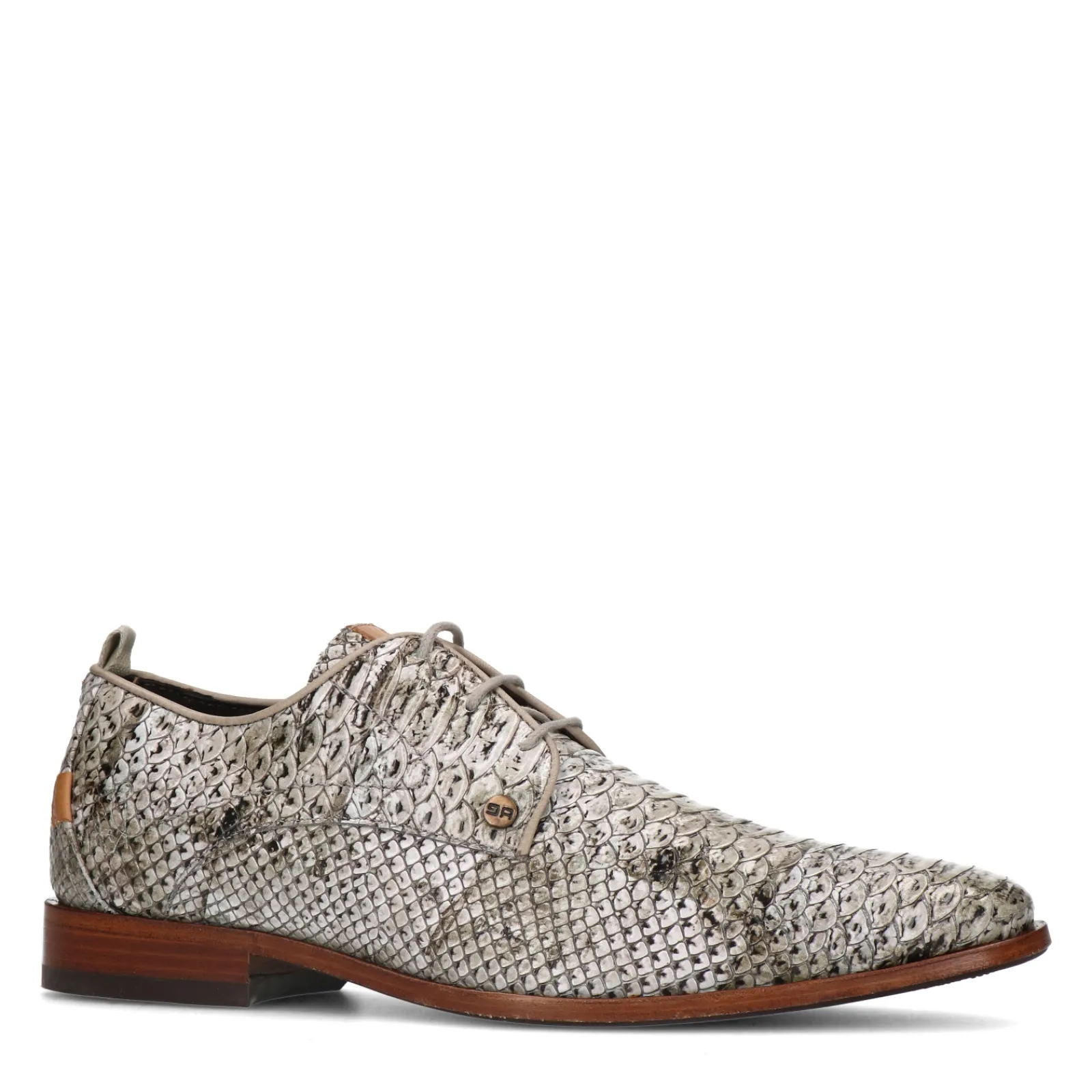 Taupe Veterschoenen Met Crocoprint Van Rehab. De Veterschoenen Hebben Een Taupe/Lichtgrijze Print En Zijn Gemaakt Van Le…