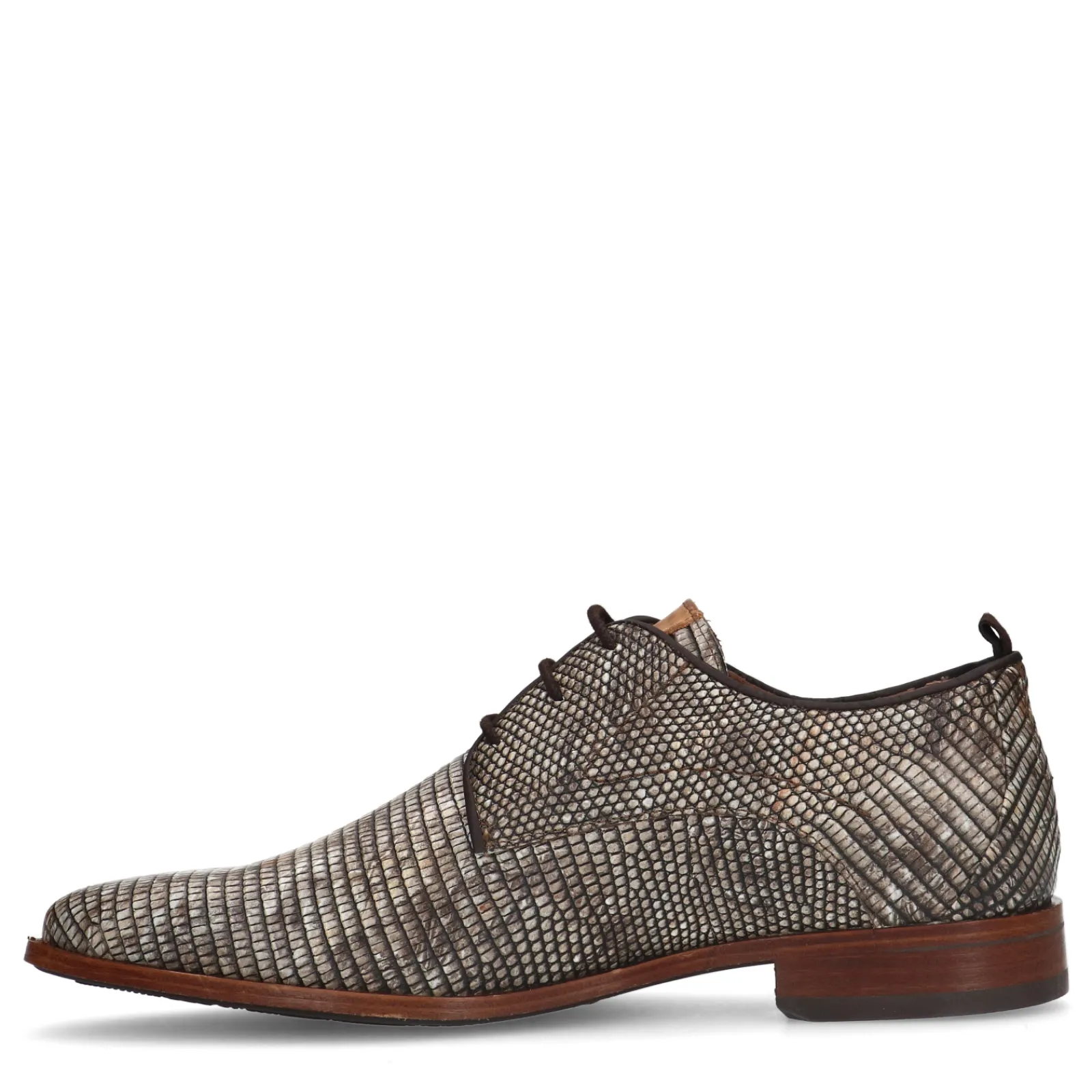 Deze Beige Veterschoenen Van Het Merk Rehab Hebben Een Uniek Zandkleurig Patroon. De Schoenen Zijn Aan De Binnen- En Buitenzijde Gemaakt Van Leer. Maak Gebruik Van De Juiste Onderhoudsproducten!