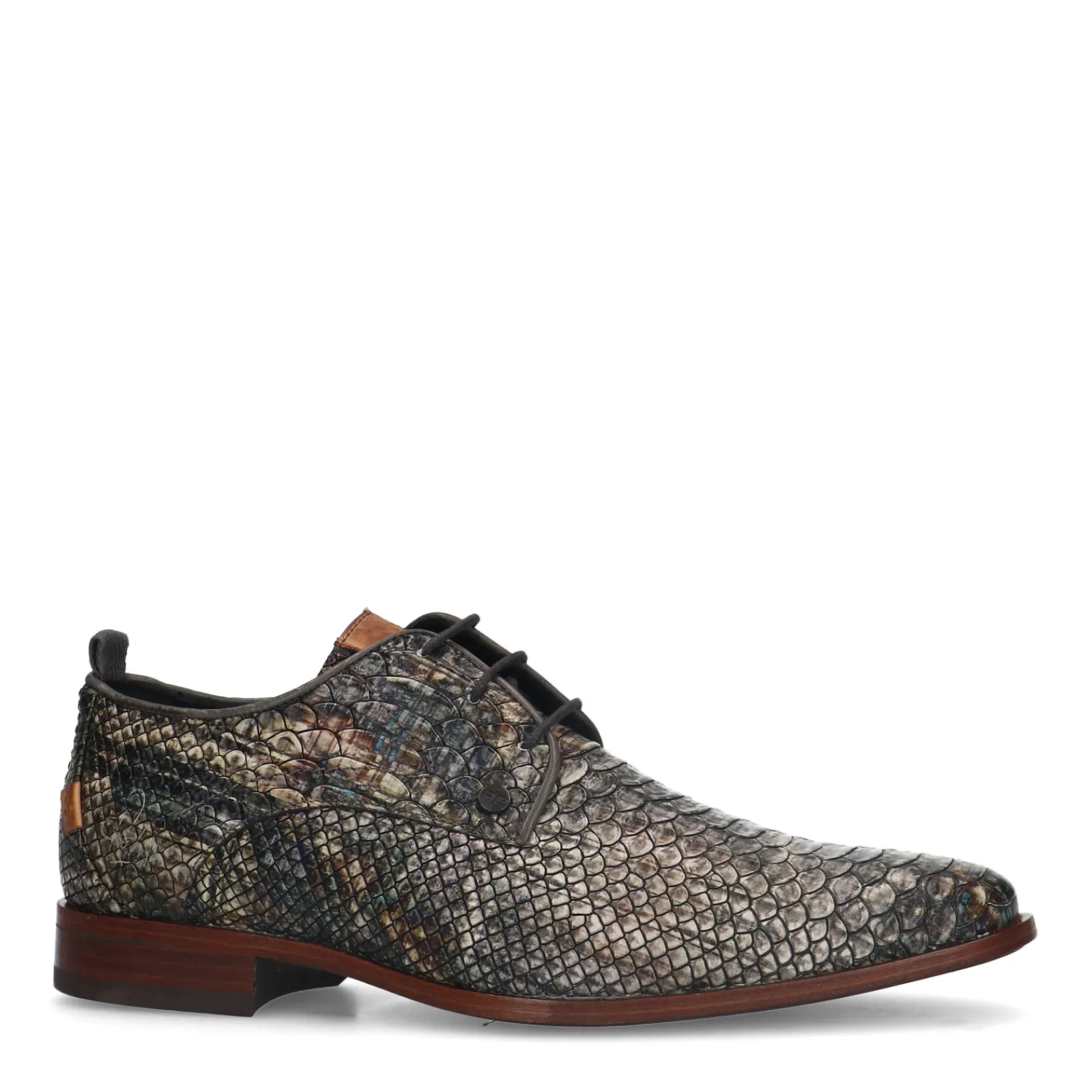 Donkergrijze Leren Veterschoenen Met Print Van Rehab. De Heren Schoenen Zijn Aan De Binnen- En Buitenkant Gemaakt Van Le…