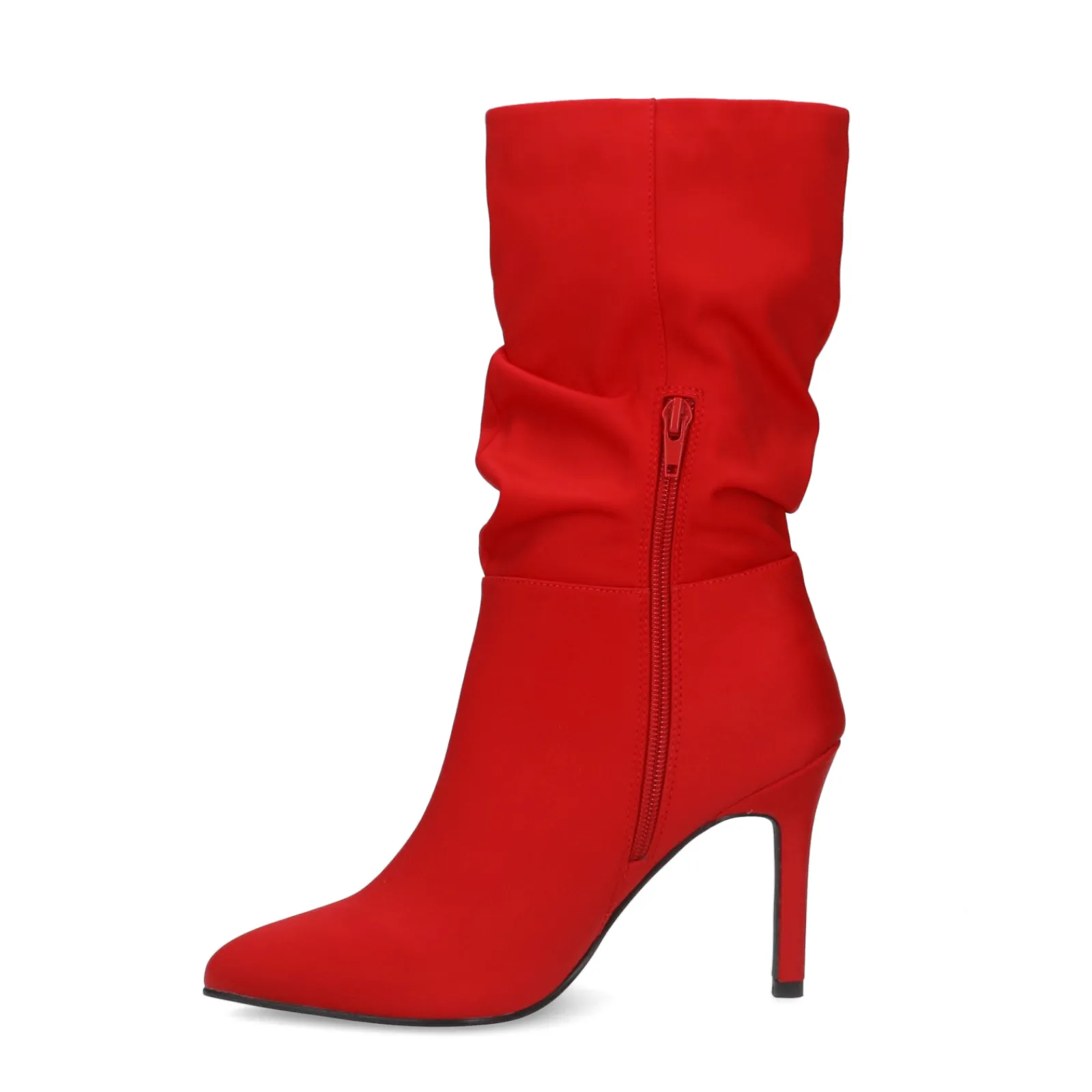 De Trend Is Terug! Deze Rode Enkellaarsjes Met Satin-Finish Hebben Een Gerimpeld Afzak Effect. De Laarsjes Hebben Aan De Binnenzijde Een Korte Rits En Een Naaldhak Van 10 Cm Hoog. De Boots Hebben Een Schachthoogte Van 23 Cm En Een Schachtomtrek Van 33 Cm. Maak Gebruk Van De Juiste Onderhoudsproducten.