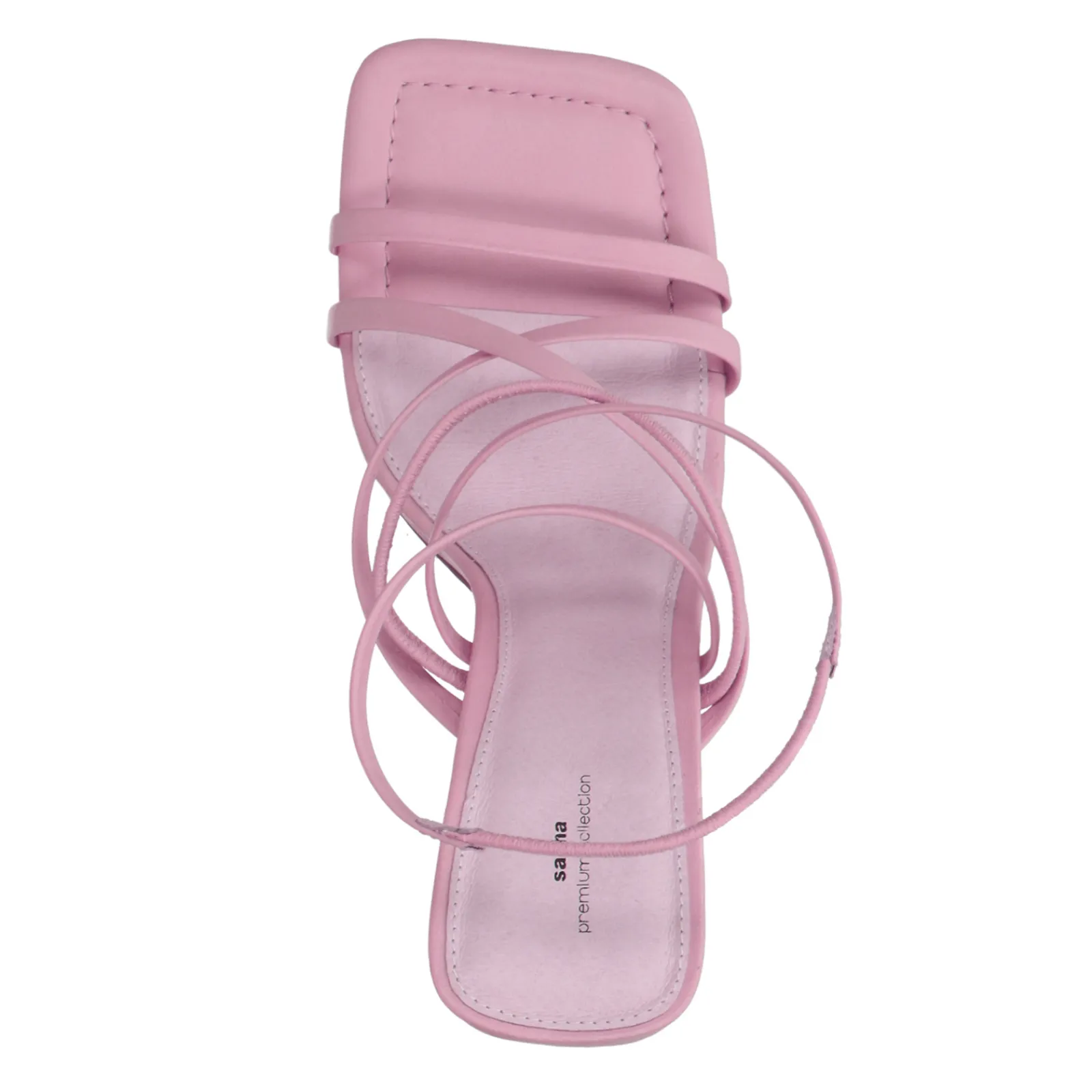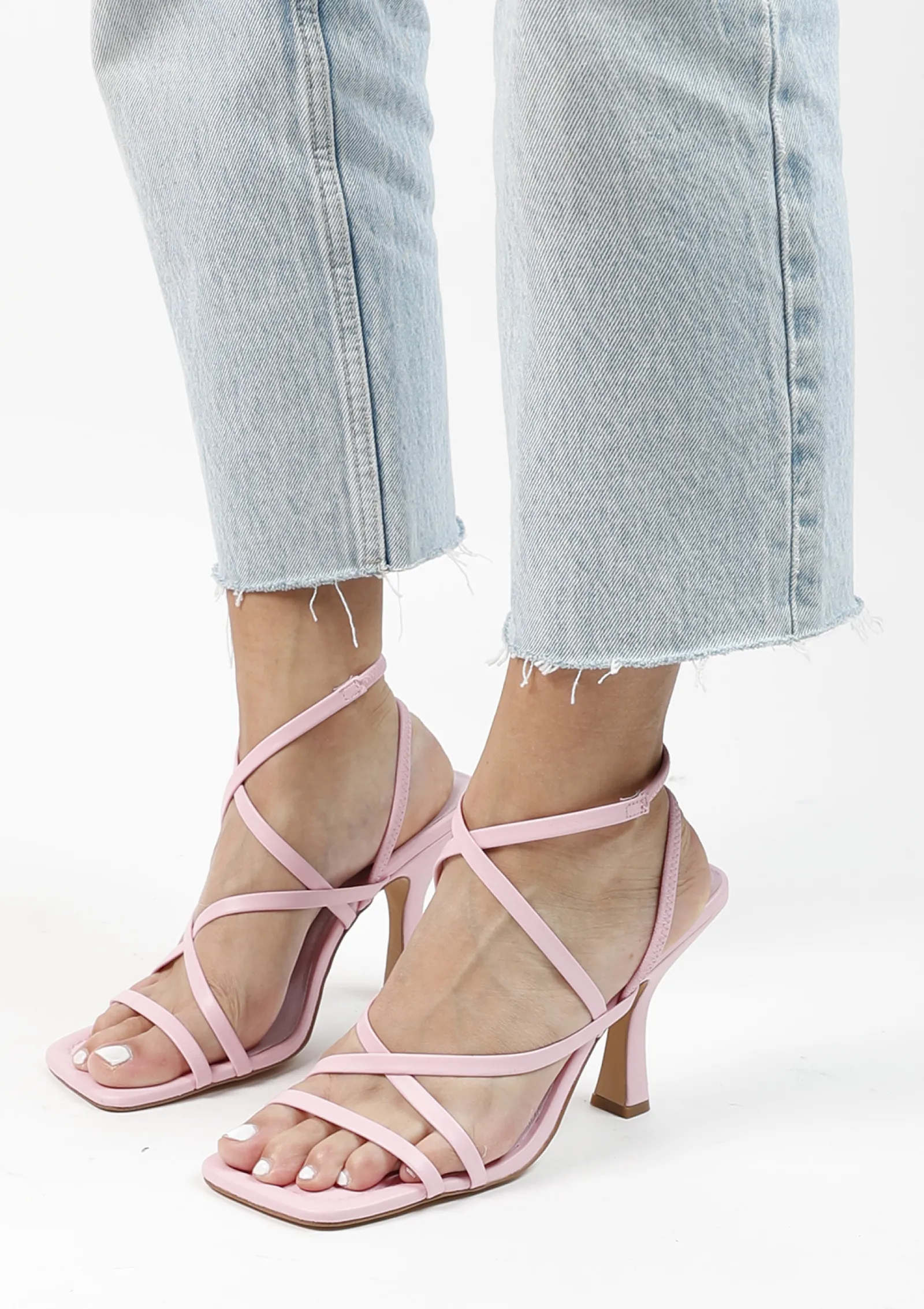 Roze Hak Sandalen Met Bandjes En Carre Neus^Sacha Store